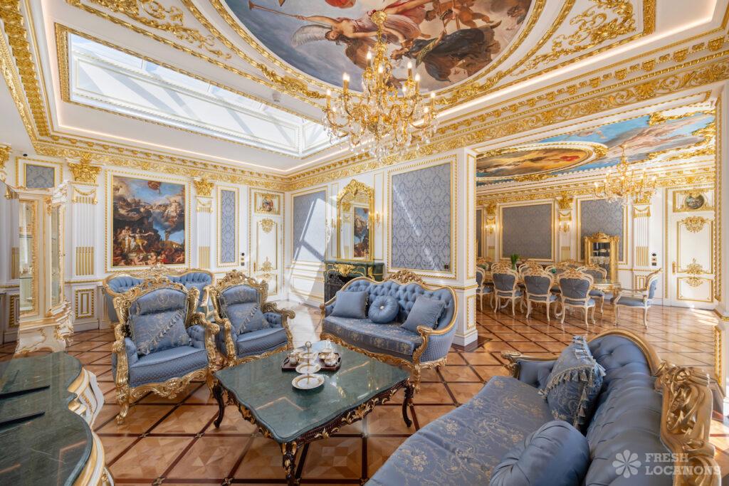 A show-stopping French Baroque–style mansion in North London, featuring luxurious classical interiors inspired by French and Italian palatial design. The property showcases ornate gold mouldings, …