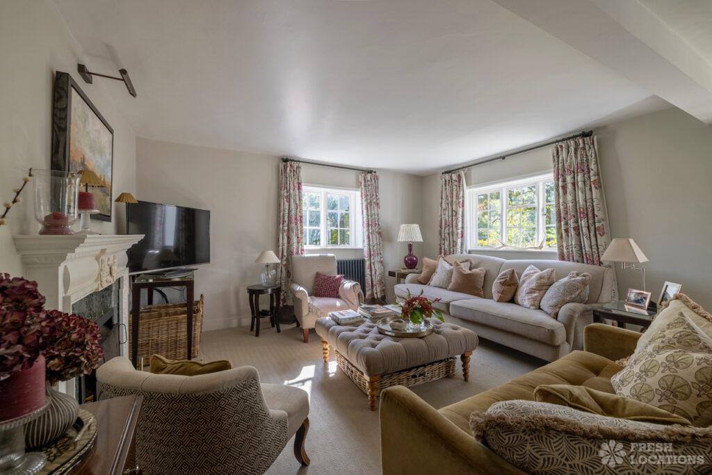 A classic country cottage shoot location in Surrey, featuring four bedrooms and three bathrooms. The main house showcases medium-height ceilings and a timeless cottage style …