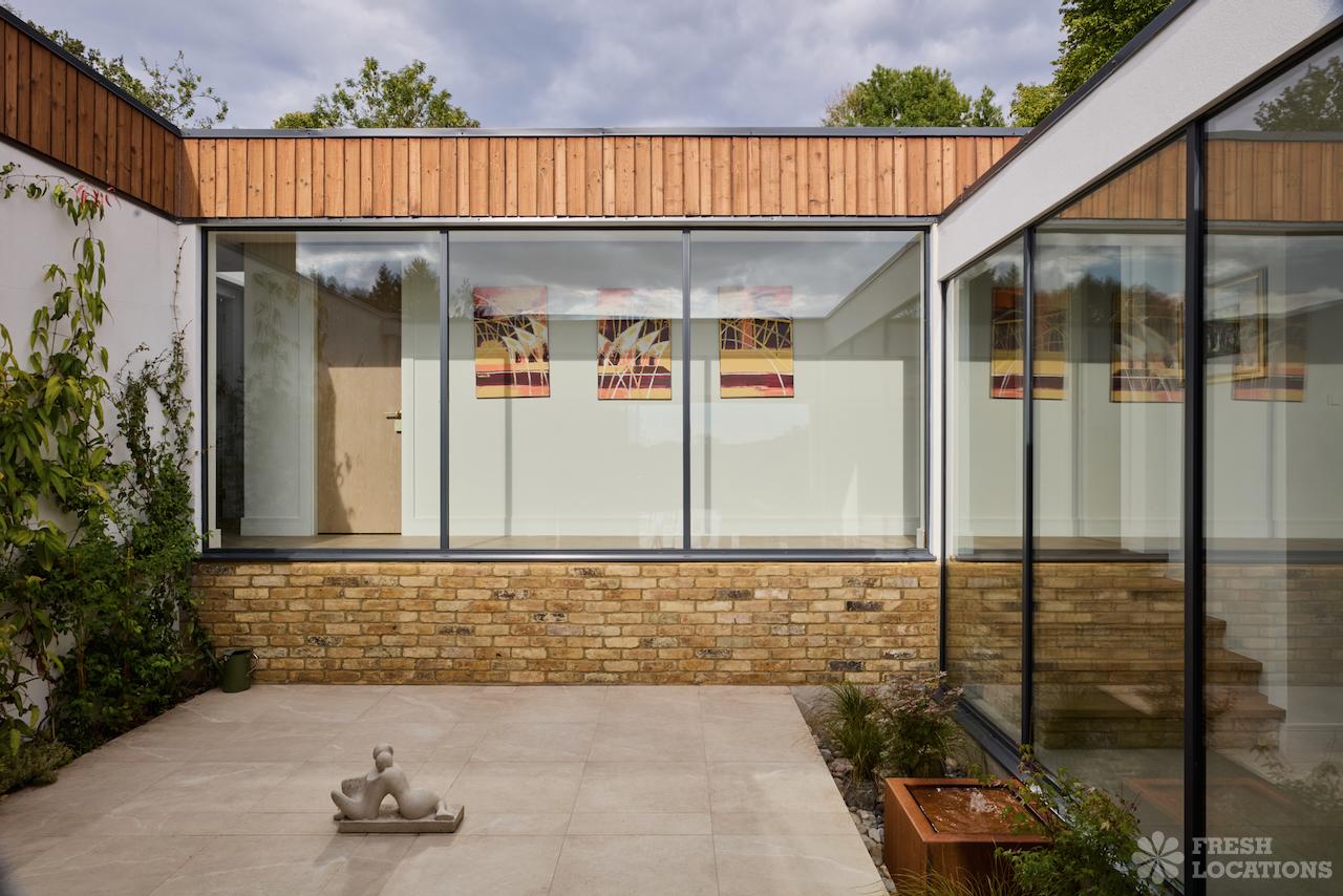 A contemporary eco home shoot location set in the Surrey Hills just outside the M25. blending modern design with sustainable living. The property features an …