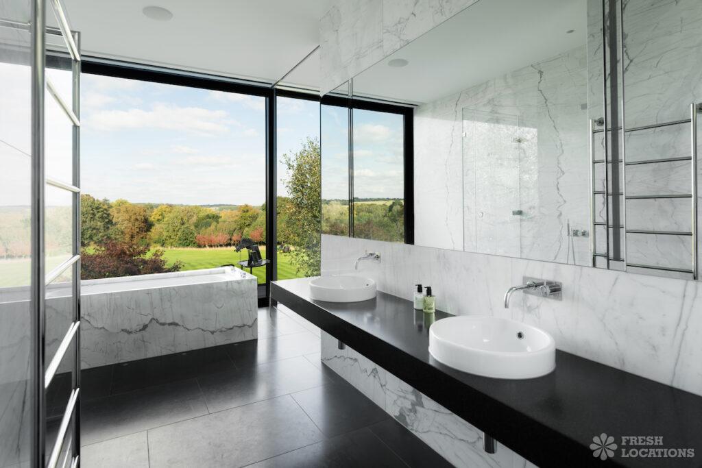 A show-stopping ultra-modern glass house shoot location in Berkshire featuring five bedrooms and nine bathrooms. The property boasts a striking double-height central hall, landscaped gardens, …