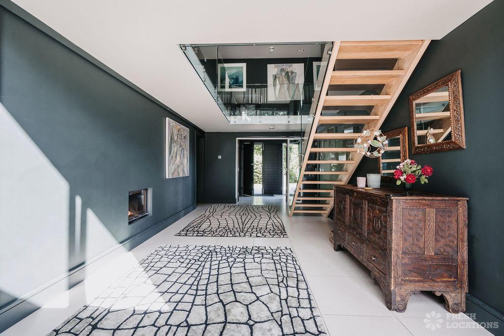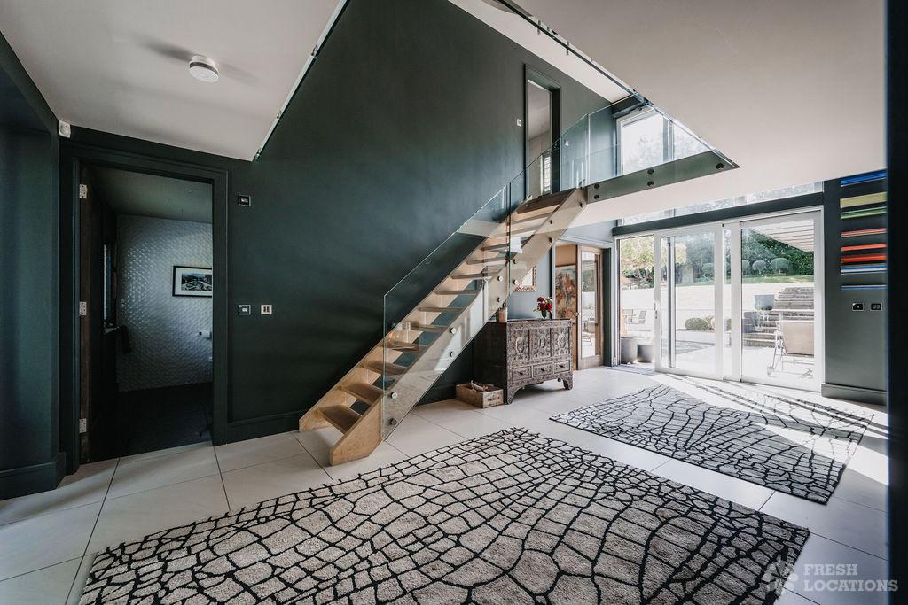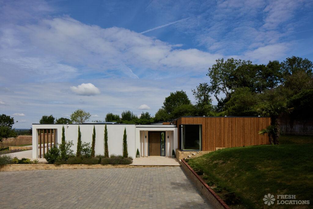 A contemporary eco home shoot location set in the Surrey Hills just outside the M25. blending modern design with sustainable living. The property features an …