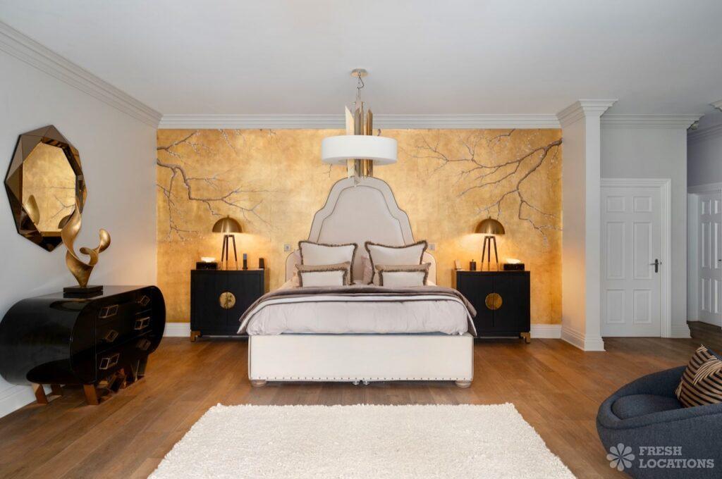 A modern five bedroom property in North London. This London shoot location features a double height mezzanine, a grand modern staircase, three living rooms, office …