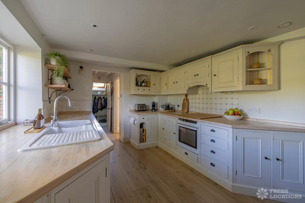 A classic country cottage shoot location in Surrey, featuring four bedrooms and three bathrooms. The main house showcases medium-height ceilings and a timeless cottage style …