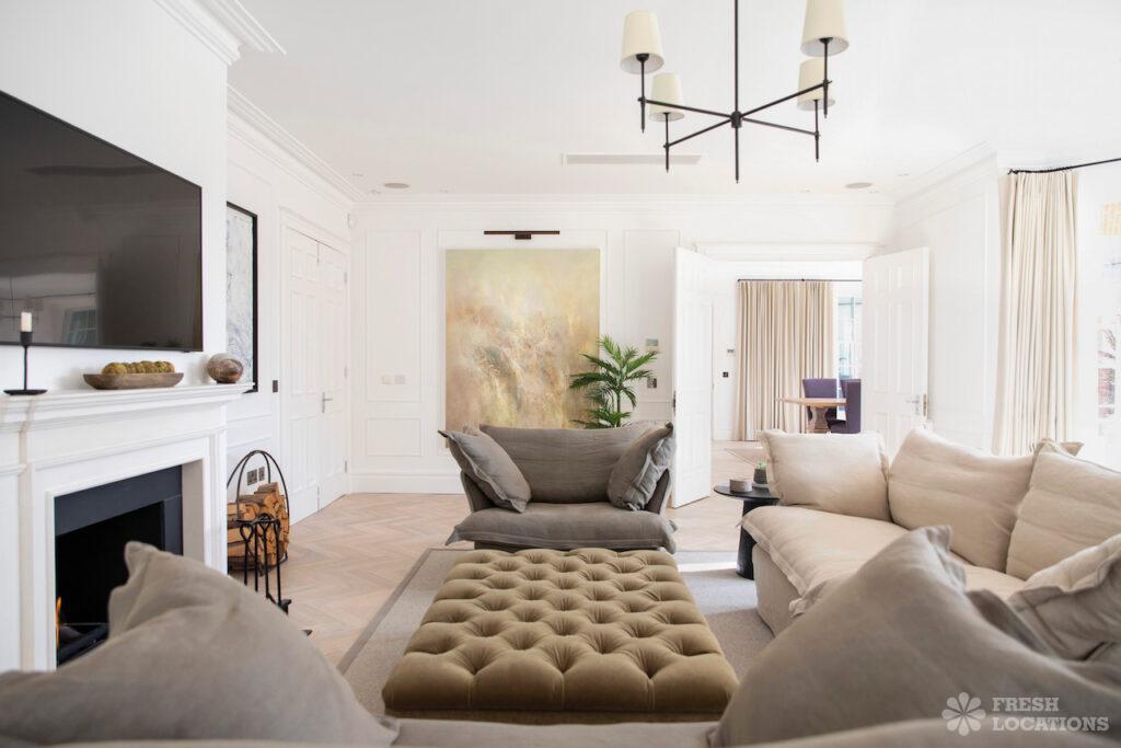 A stunning newly renovated home shoot location in West London, featuring six bedrooms and four bathrooms. The property includes an open-plan kitchen with elegant white …