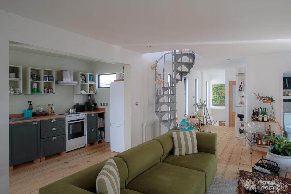 A striking factory conversion shoot location in London, this unique property features original stone floors, exposed brickwork, and industrial-style doors. The open-plan layout includes a …