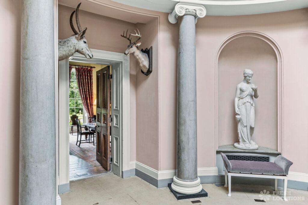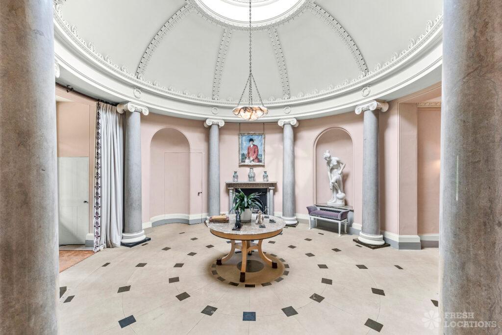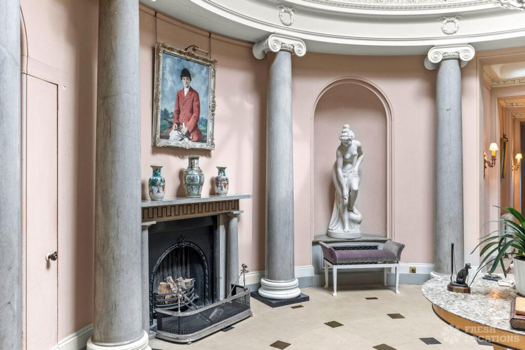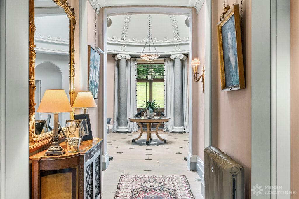 Chelmsford Hall is a grand shoot location in Essex, featuring a stately Georgian-style exterior with red-brick detailing, grand columns, and a symmetrical design. The interior …