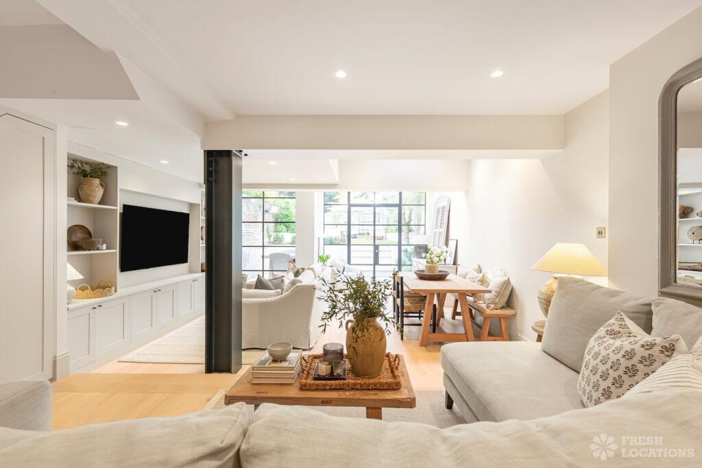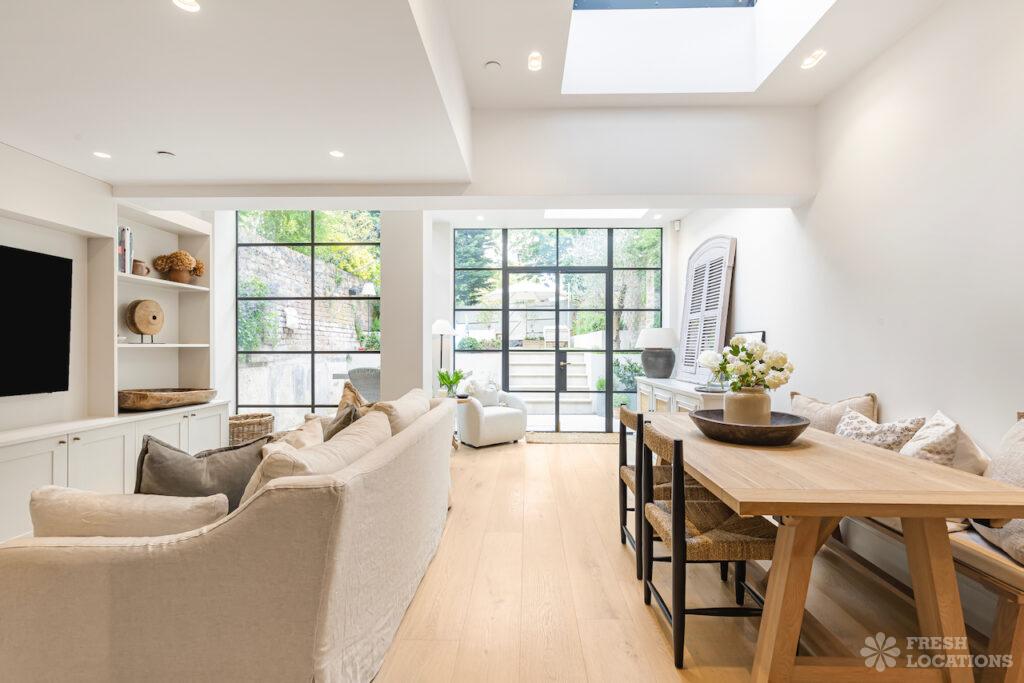 A beautiful red-brick Victorian house shoot location in Chiswick, West London, this elegant property blends period character with modern styling. It features a striking kitchen-diner …