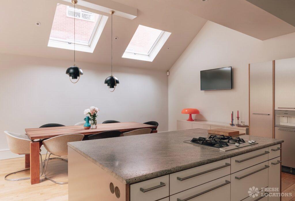 Modern/Scandinavian family home shoot location in South East London. Features an open plan double level kitchen/diner, plaster walls and multiple bathrooms and bedrooms. London Borough …