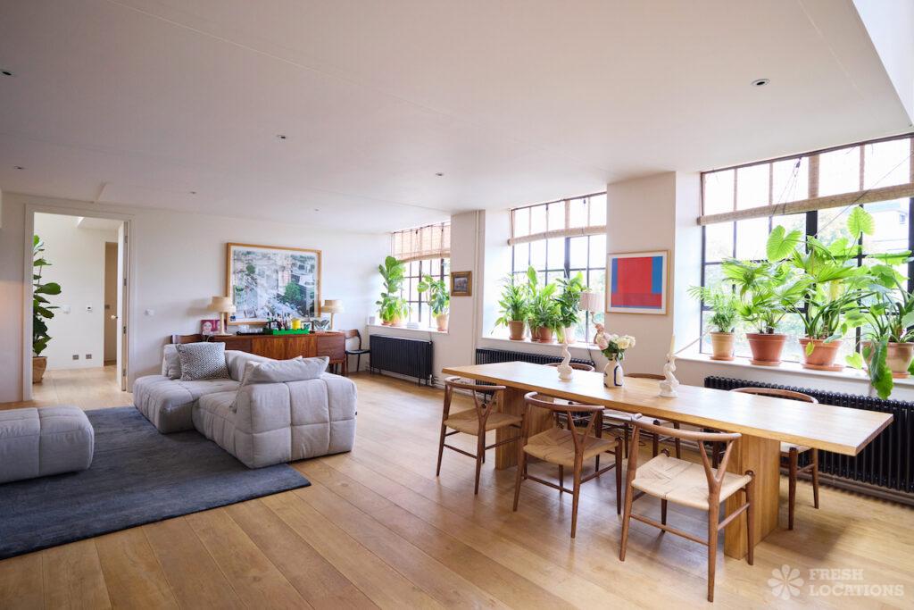 Stylish mid-century inspired house shoot location in West London. This property has a warm, neutral palette and carefully curated interiors, and includes a large open-plan …
