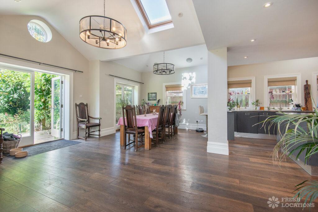 A large family home shoot location in Ealing, West London. Features include a large kitchen with island cooker, polished concrete floor and exposed brick. London …