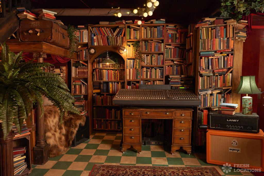Cooper Studio is a luxurious boutique recording studio near Farringdon, decorated in the style of an old study/library. London Borough of Camden.