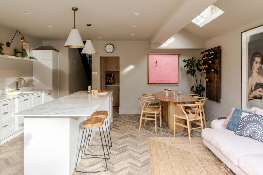 A modernised 1930’s house near Lordship Recreation Ground. Bright kitchen with light wood features throughout and large skylight. London Borough of Haringey.