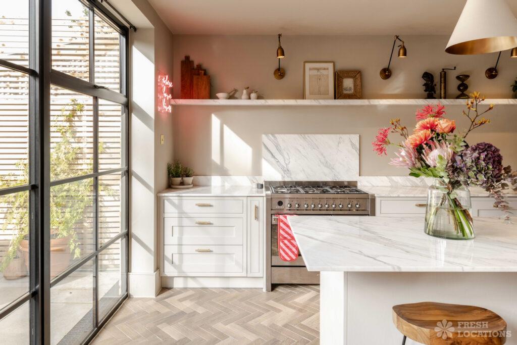 A Stylish Victorian terraced house shoot location in North London, featuring four bedrooms and three bathrooms, with high ceilings, original coving, and marble flooring. Located …