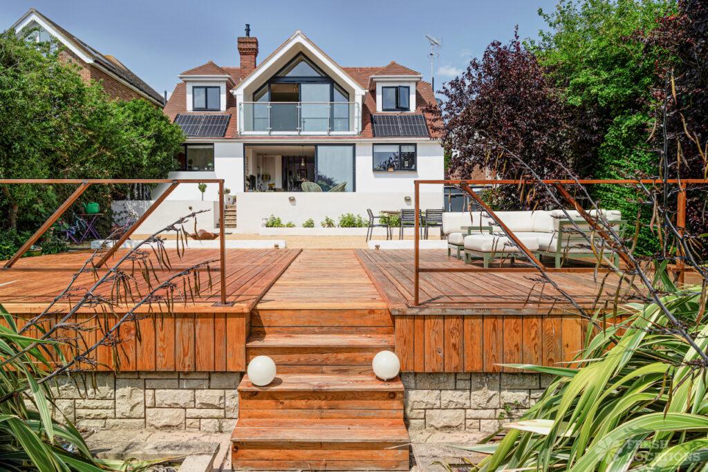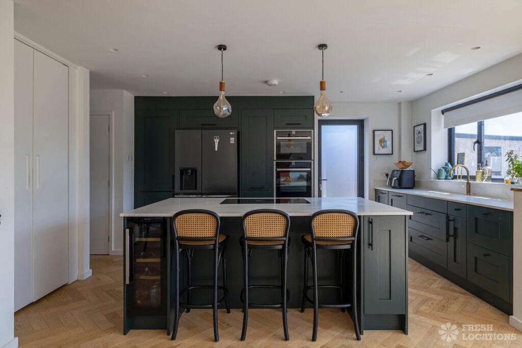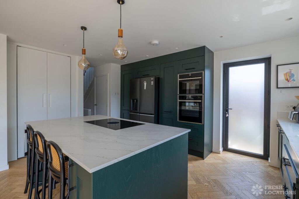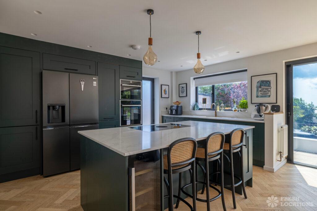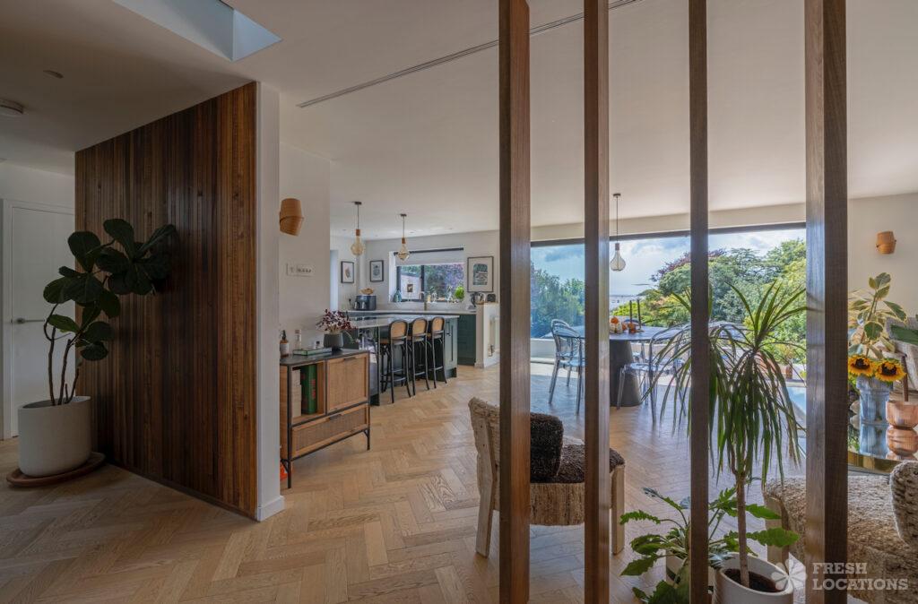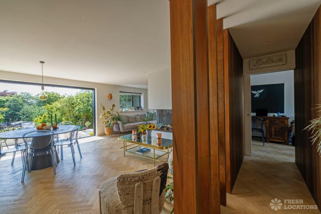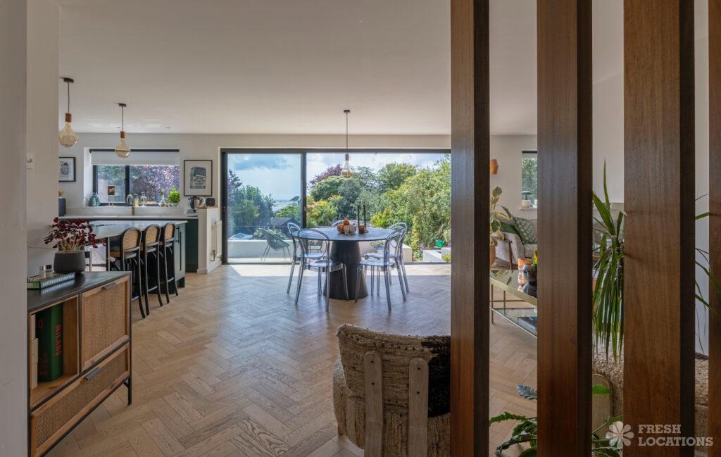 A beautiful modern seaside home shoot location in Kent, this light-filled property features oak herringbone floors and full-height glass doors opening onto a spacious, sea-facing …