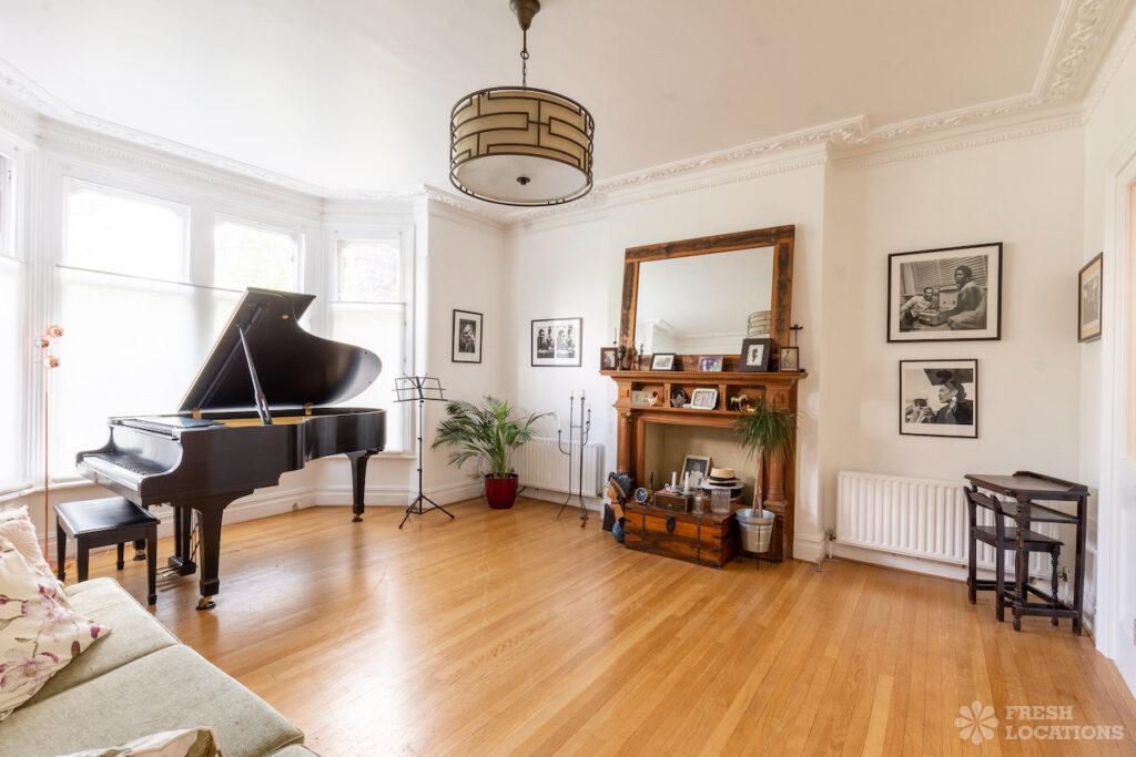 Large detached house shoot location in South West London. Featuring an open plan kitchen/dining area and a spacious living room with grand piano. London Borough …
