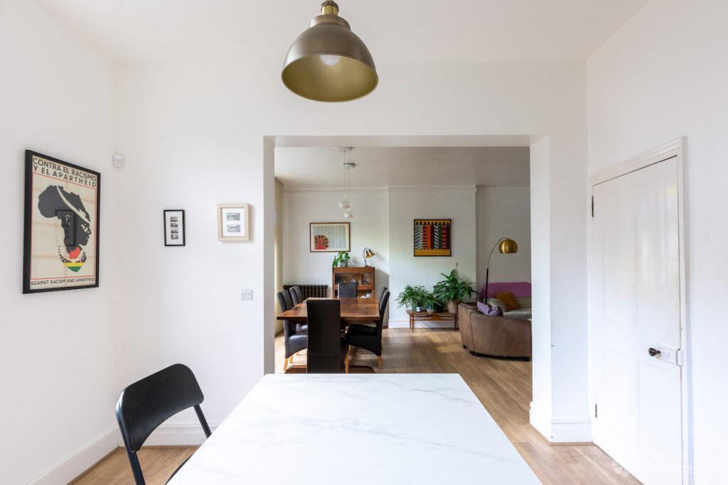 A semi-detached family house with a kitchen, separate dining room, living room, two bathrooms and five bedrooms. London Borough of Lambeth.