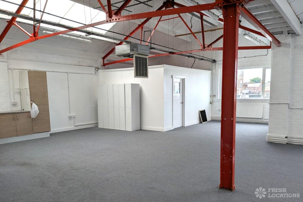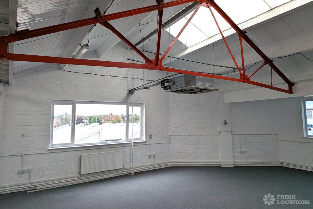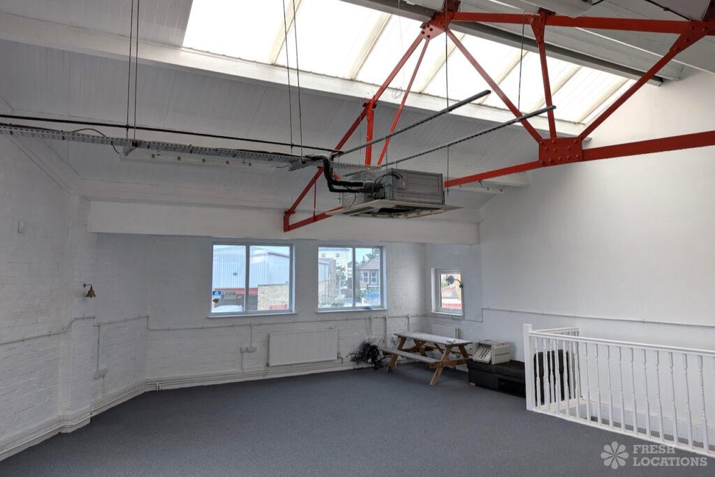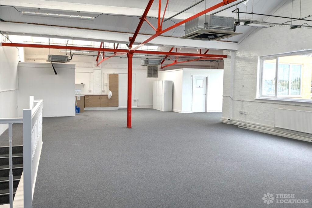 A striking industrial shoot location in south-west London, offering 3,700 sq ft of versatile space across two floors. The upper level features a light-filled open-plan …