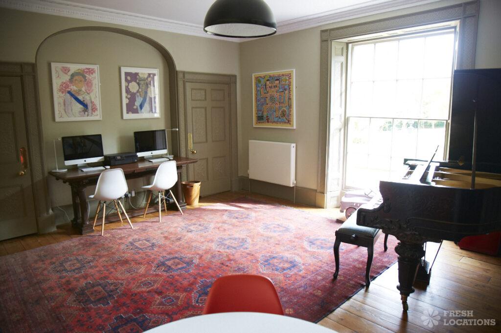 Grade 2* Georgian house shoot location decorated in the late 70s and early 80s. Ten bedrooms, four large reception rooms, large private woodland and topiary.