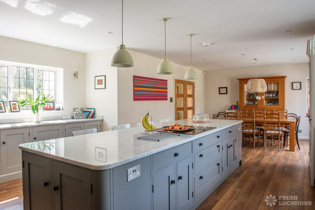 A 1950’s detached house shoot location in Surrey. This family home has a 90’s style interior with an open plan kitchen/diner, multiple living rooms, multiple …