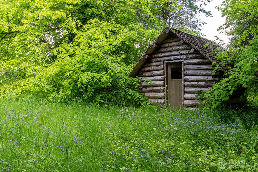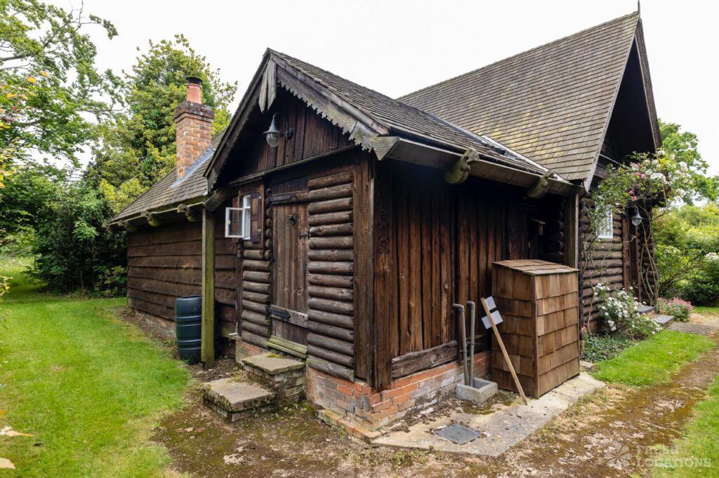 A cabin shoot location in Oxfordshire. This cabin features traditional and country decor with wooden beams, wood cladding and views to the countryside.