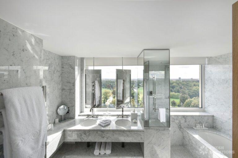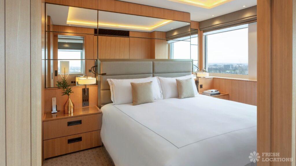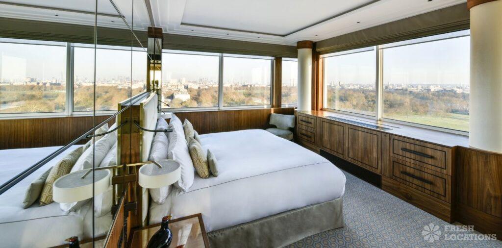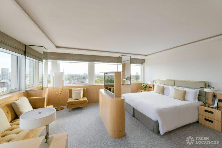 Tiled Floor, City Views, Full Height Windows, Large Bedroom, Open Plan, Panelling, StaircaseA modern Hotel overlooking Hyde Park available for photoshoots and filming. Features include SmartStudio, hotel rooms/suites with city views, a restaurant, bar, gym, meeting rooms, large hall/ballroom and various glamarous dining areas. The innovative SmartStudio features a 20sqm Extended Reality stage with LED backdrop and floor, audio, broadcast cameras and TV-ready lighting. City of Westminster.