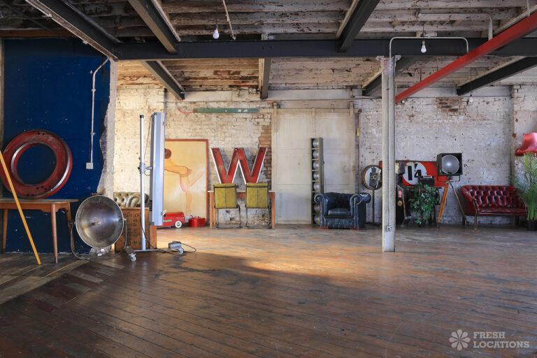 2550 sq ft of industrial Victorian Warehouse space with large windows, distressed floorboards throughout and an evergrowing selection of props. London Borough of Haringey.