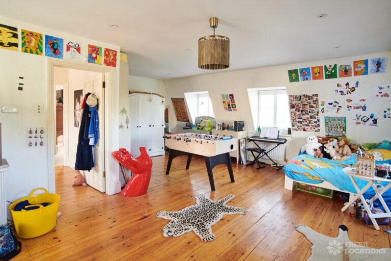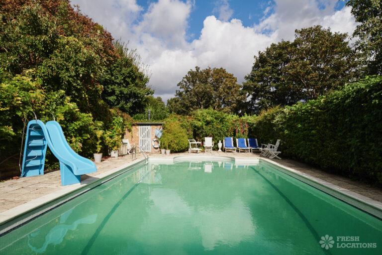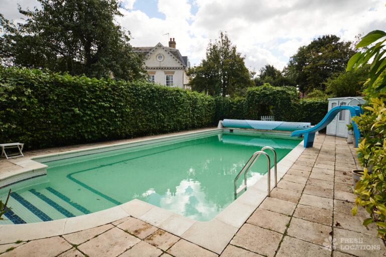 Wood Floors, Balcony, Driveway, Ensuite, Fireplace, Garage, Garden, Gas Hob, Home Office, Island Kitchen, Large Driveway, Skylights, Staircase, Summer House, Swimming Pool, Tiled FloorLarge family home located in Barnes. Great shoot location with 3/4 acre garden, outdoor swimming pool, multiple living rooms, children’s bedrooms. Large driveway, garage and gated entrance. London Borough of Richmond upon Thames.