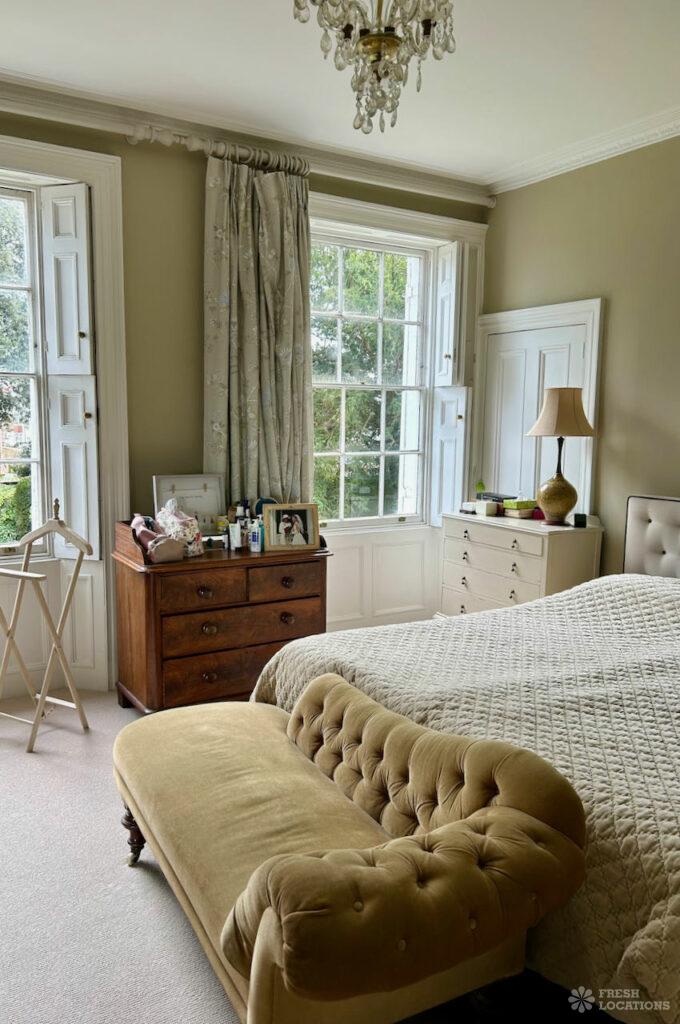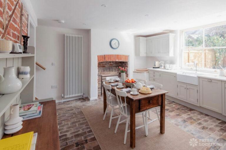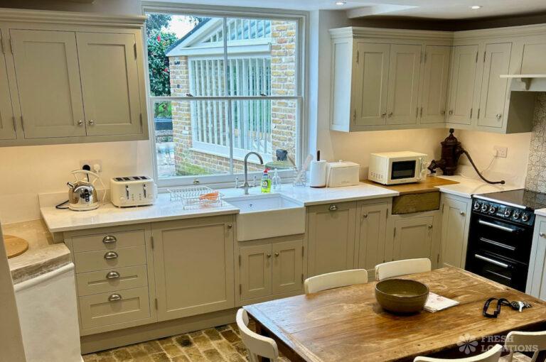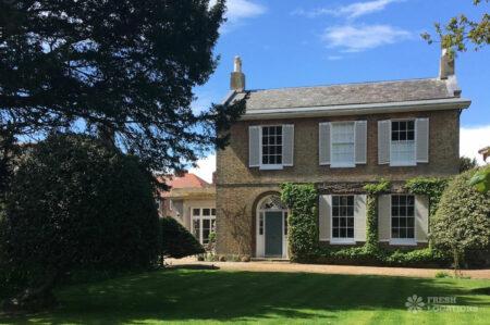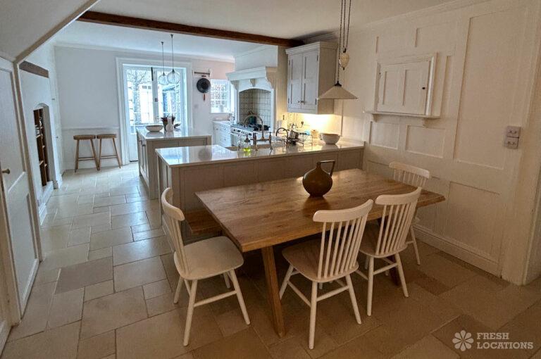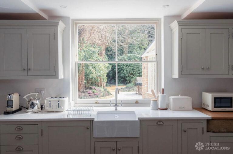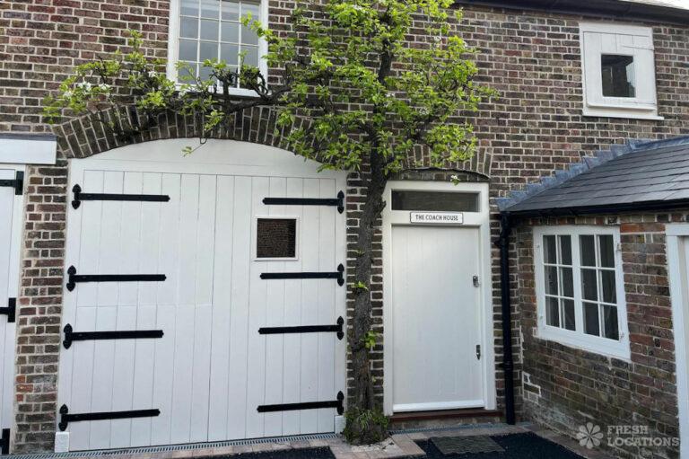 Dark Wood Floor, Bay Window, Driveway, Exposed Beams, Exposed Brick, Garden, Gas Hob, Island Kitchen, Large Bathroom, Large Driveway, Multiple Bathrooms, Multiple Bedrooms, Multiple Kitchens, Multiple Living Rooms, Staircase, Summer House, Tiled Floor, Wood FloorsDetached Georgian house shoot location in Kent. This property offers ample shoot space, including multiple living rooms, kitchens, bedrooms and bathrooms, which feature wooden floors, sash windows, original shutters, and moulded cornices. Separate from the main building, the coach house offers additional space. Gates lead from the courtyard into a delightful south facing garden with a large lawn.