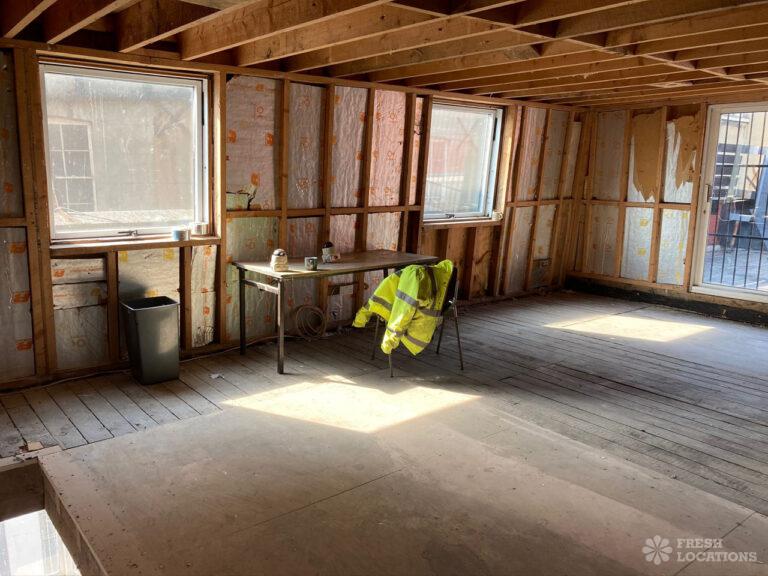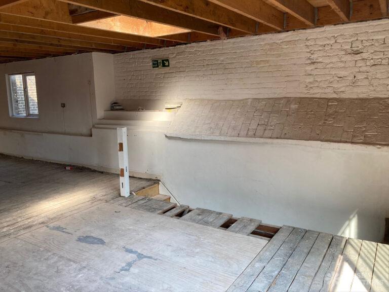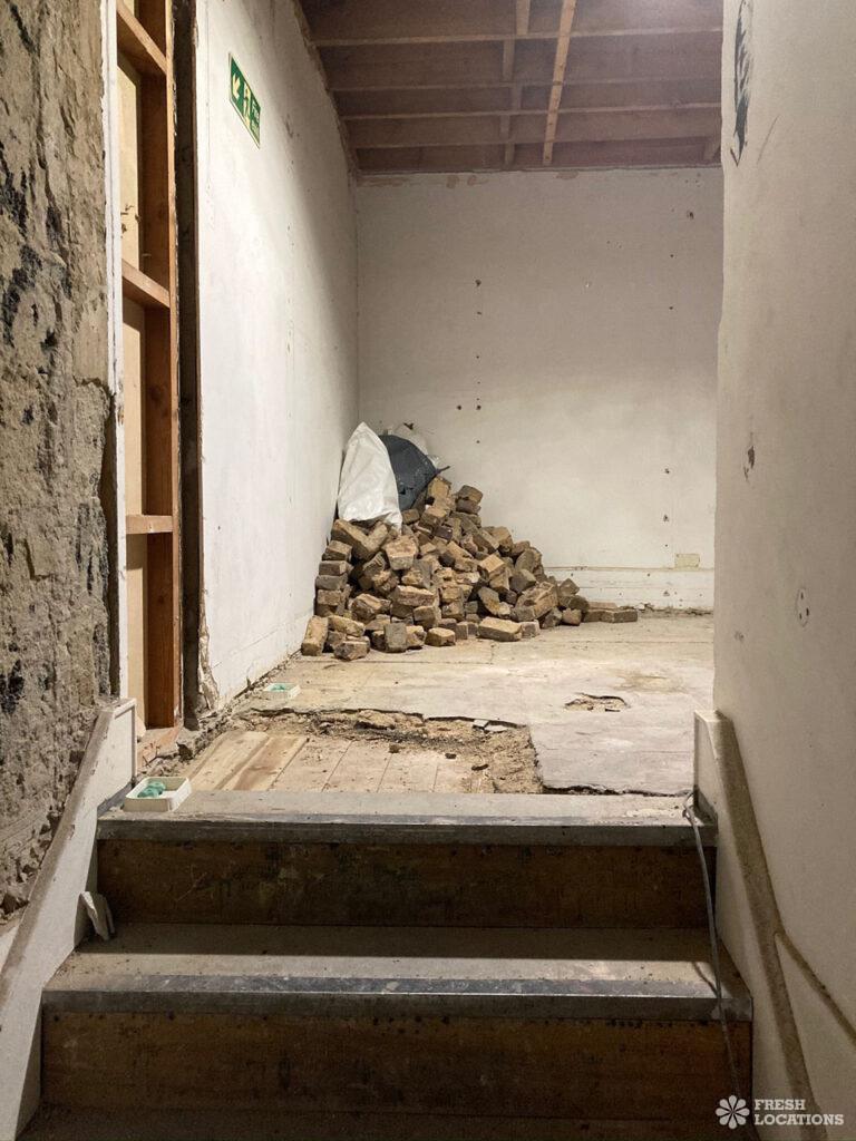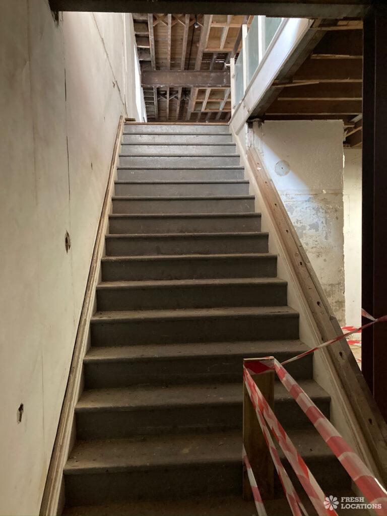 Derelict shoot location space in South East London. Set over 3 floors with a roof terrace. London Borough of Southwark.