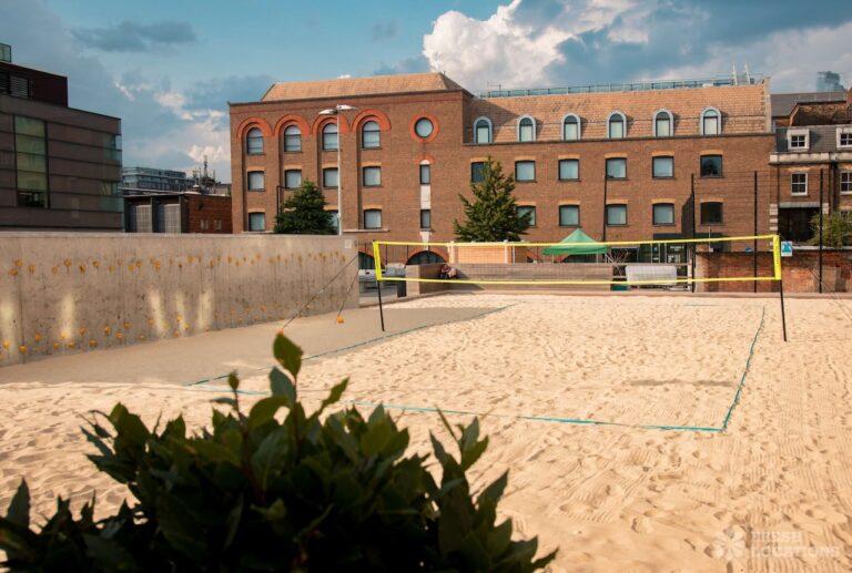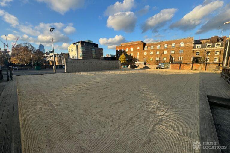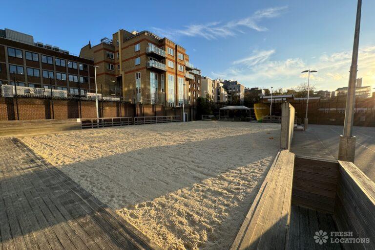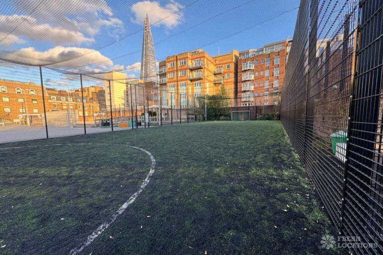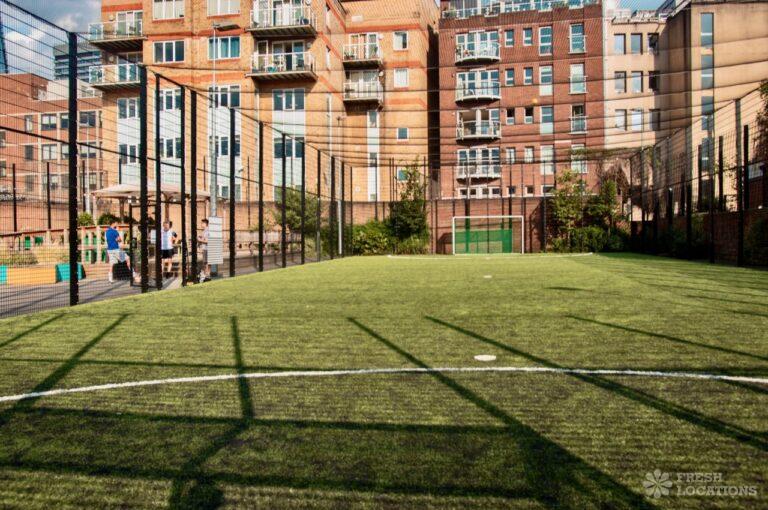 A spacious 22,000 square feet urban sports area in South East London. The space has multiple sports pitches and courts including a football pitch, an outdoor squash court and a beach volley ball court. London Borough of Southwark.
