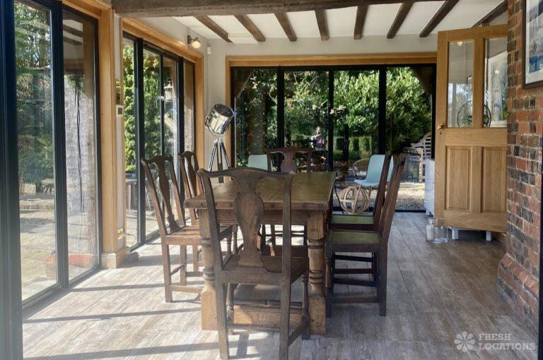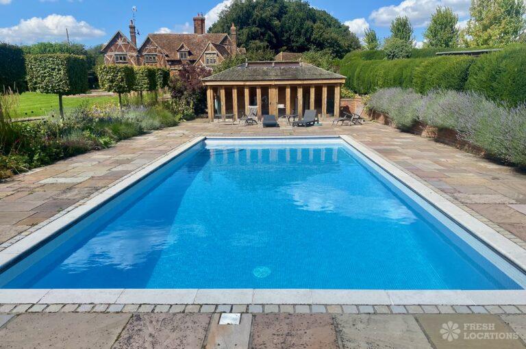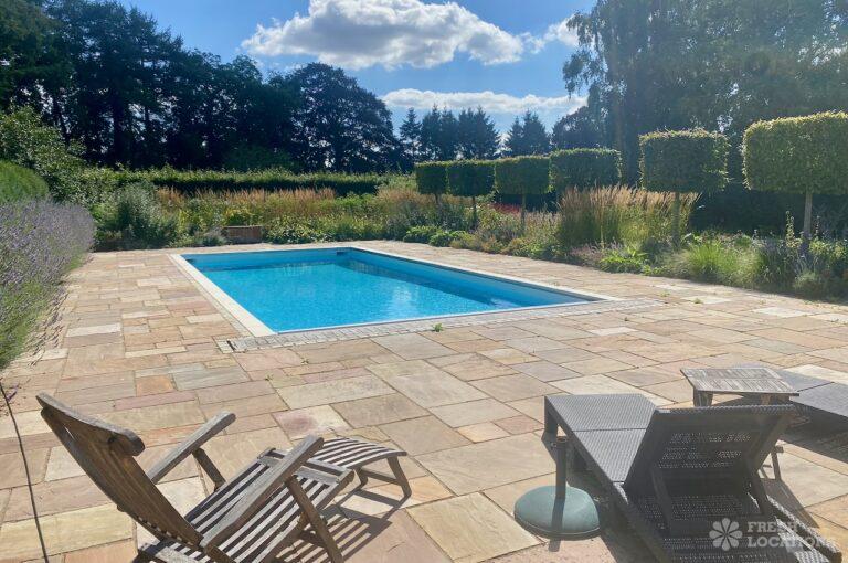 Wood Floors, Exposed Beams, Large Garden, Light Wood Floor, Multiple Bedrooms, Multiple Kitchens, Walk In ShowerA countryside house shoot location with a vineyard. The property features a large garden with an outdoor pool, woodlands and fields overlooking countryside views.