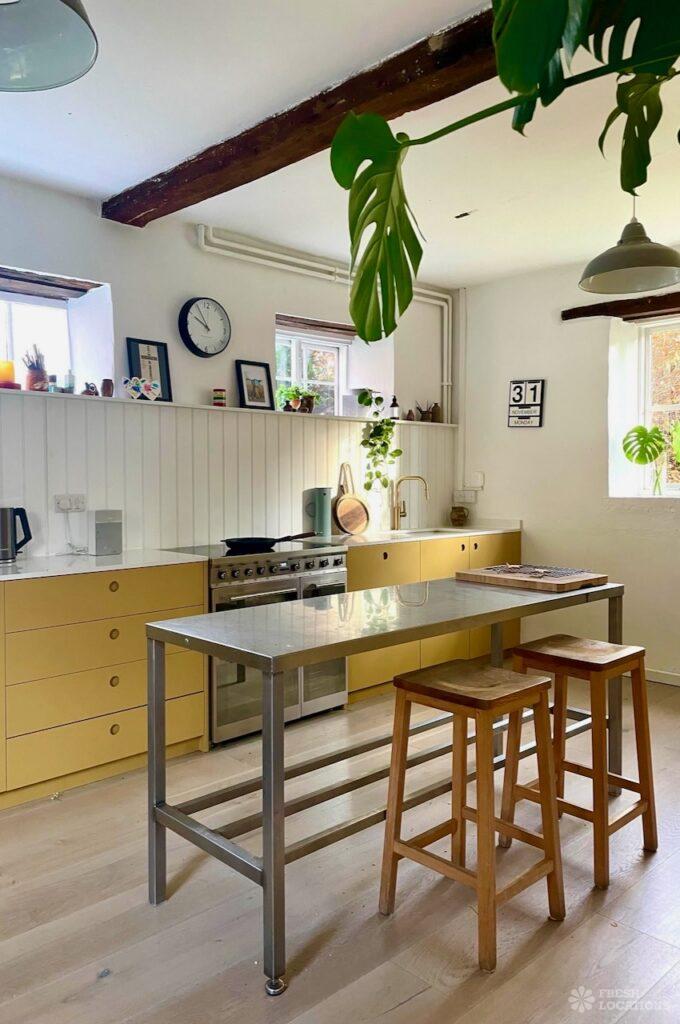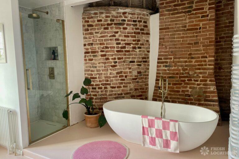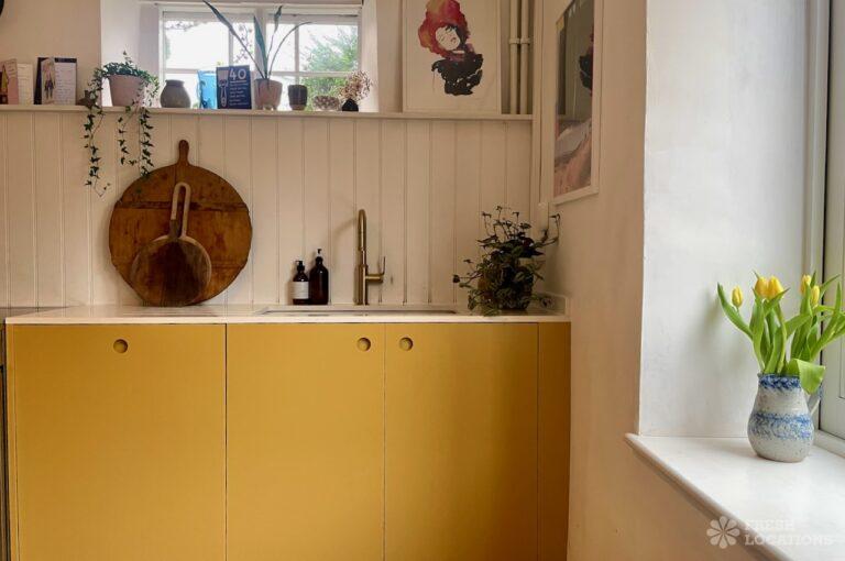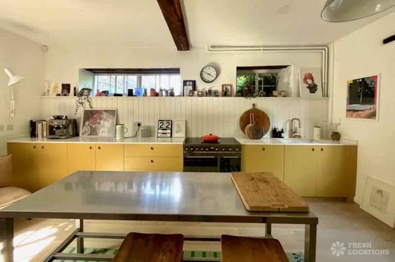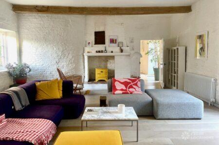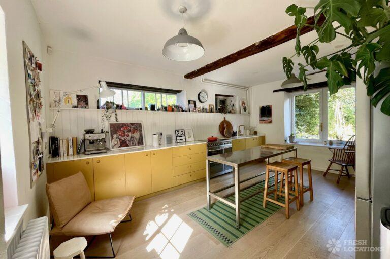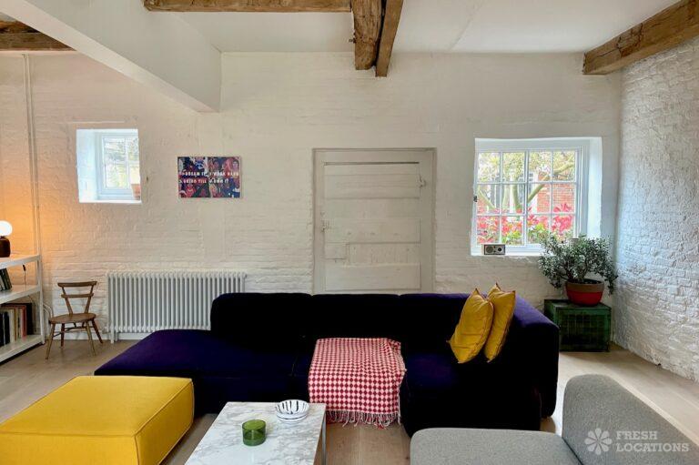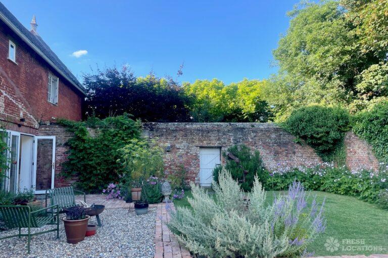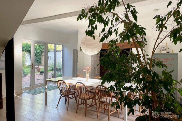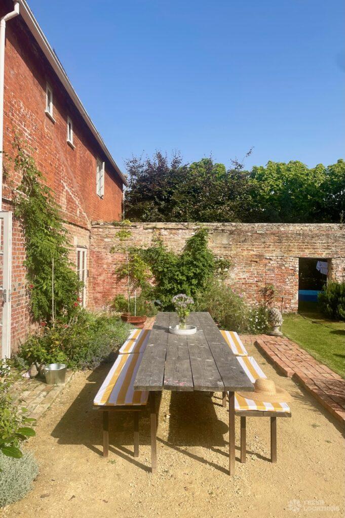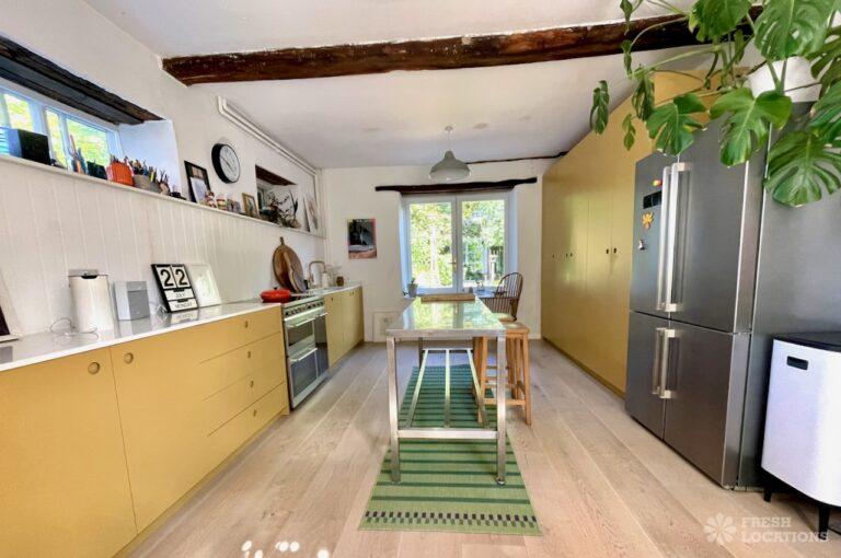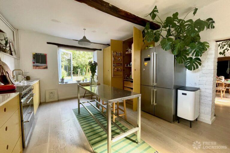 Colourful Kitchen, Exposed Beams, Garden, Island Kitchen, Large Garden, Light Wood Floor, Wood FloorsA country house in Cambridgeshire that has been tastefully modernised, whilst keeping it’s original country style features including exposed brick walls, wooden beams and wood floors. Outside there is a walled garden and outdoor seating area.