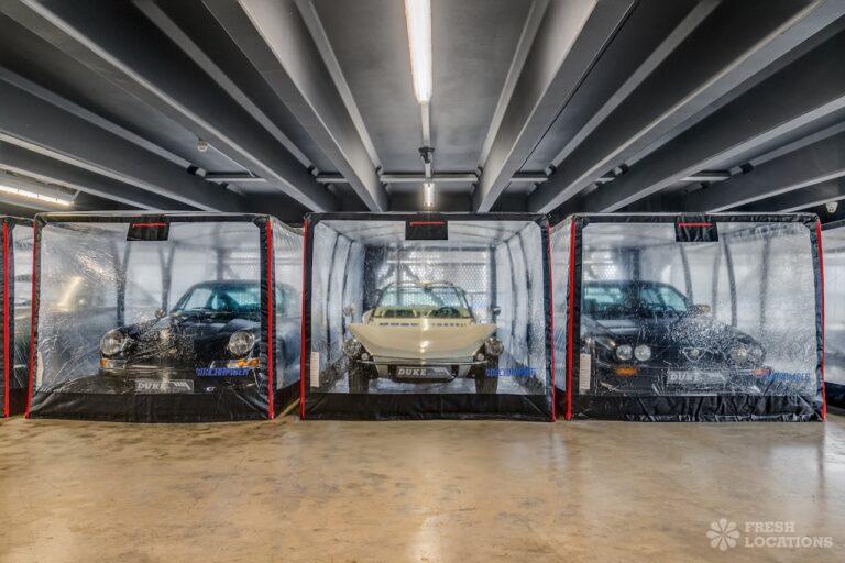 Level 7 of Brentford Dock in West London is converted into a characterful classic car dealership. The bottom level (7,500 sq ft) consists of a Coffee Shop, Office and Showroom for cars and motorbikes. The top level (7,500 sq ft) is predominantly car storage but also a car dealership and workshop. Cars can be removed if required. London Borough of Hounslow.