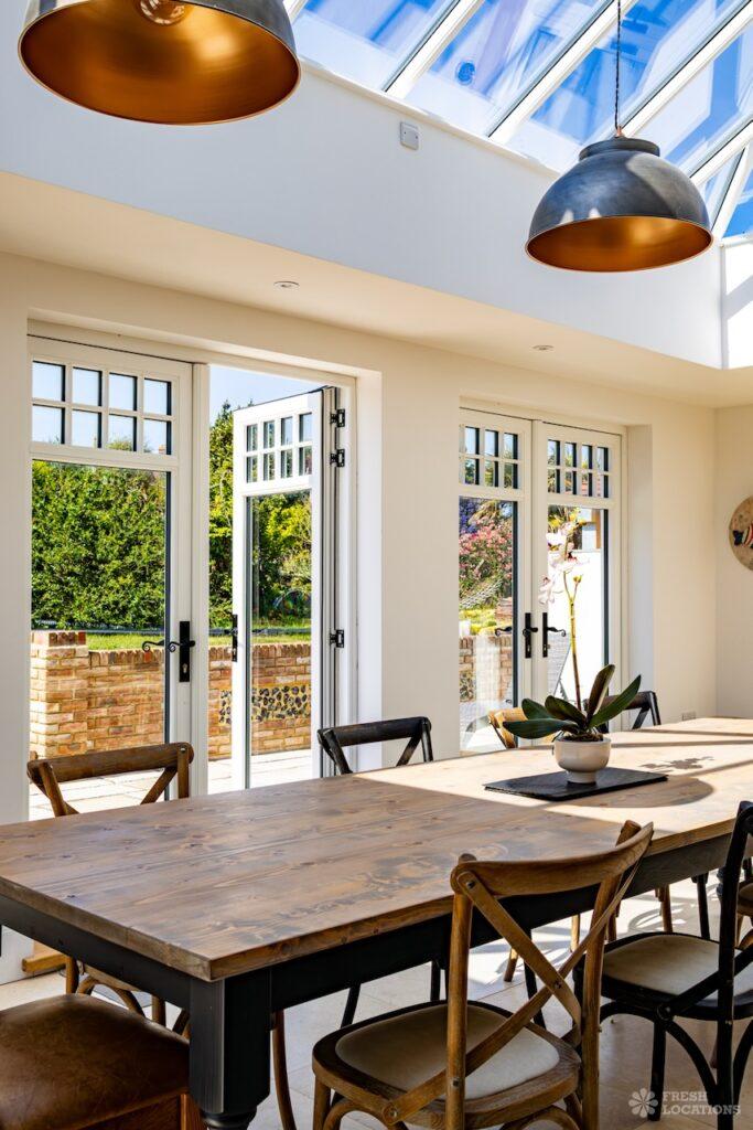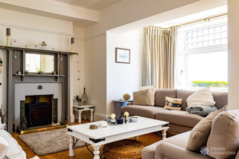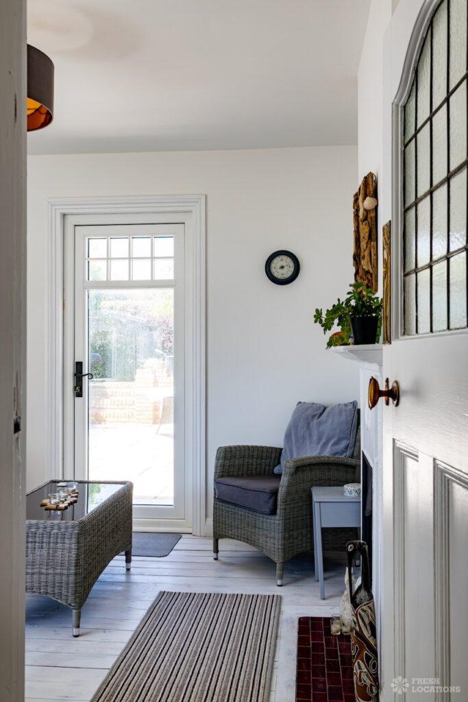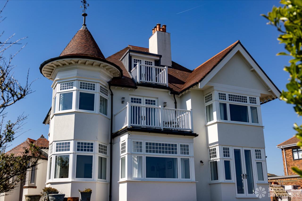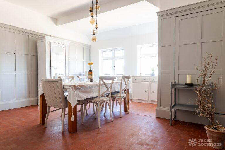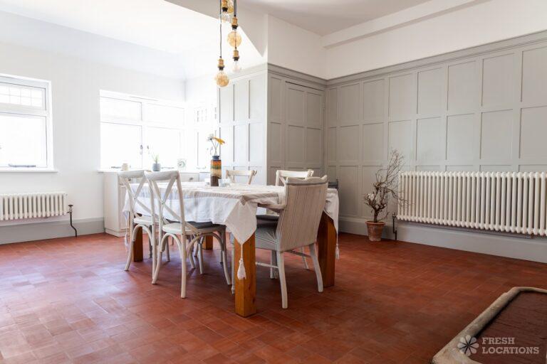 Balcony, Colourful Kitchen, Driveway, Exposed Brick, Fireplace, Garden, Inglenook Fireplace, Island Kitchen, Large Bedroom, Multiple Bathrooms, Multiple Bedrooms, SkylightsA captivating Edwardian residence on the coast of Kent, available as a unique and versatile shoot location. Thoughtfully designed with a neutral palette, this property has serene, spacious interiors. The home features a generous kitchen complete with an island and dining area, bathed in natural light. One of the bedrooms opens onto a private balcony with sweeping views of the beach and cliffs. With its graceful proportions and timeless finishes, every detail of this home offers a refined yet versatile setting.