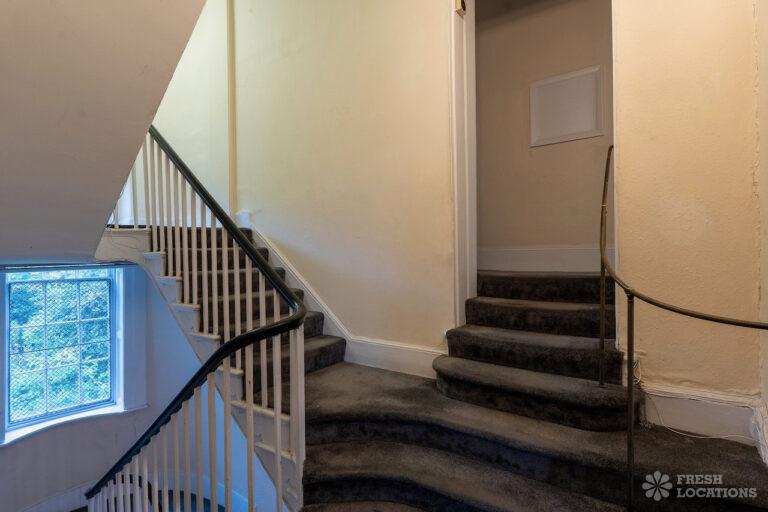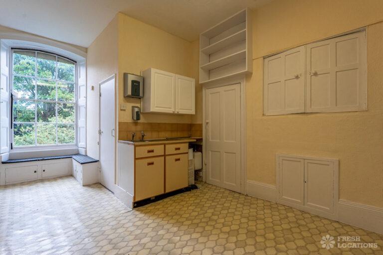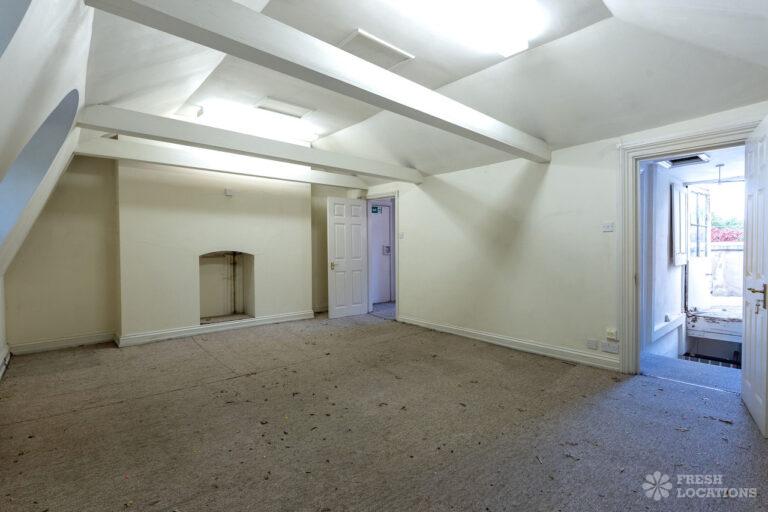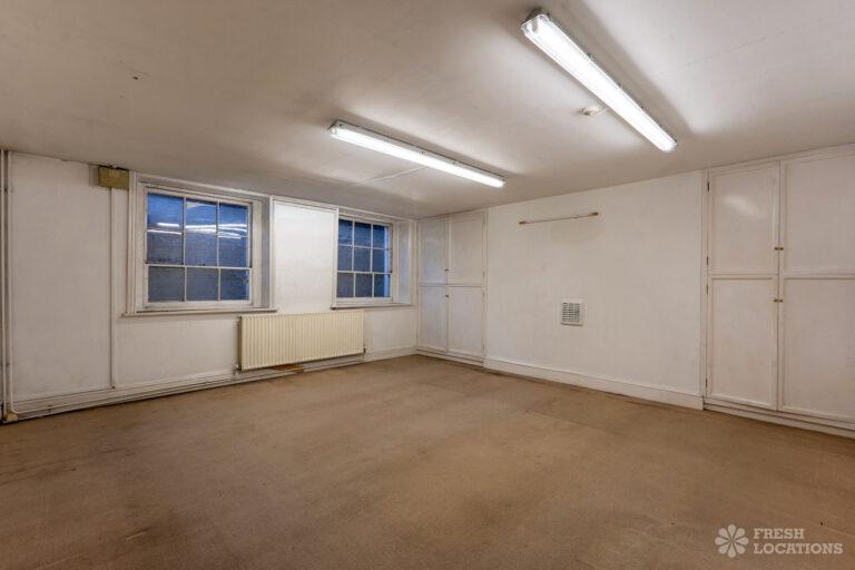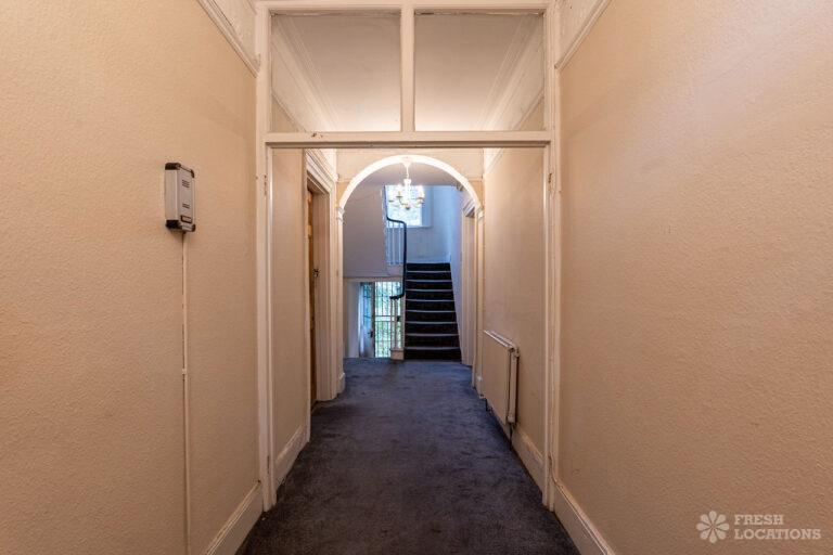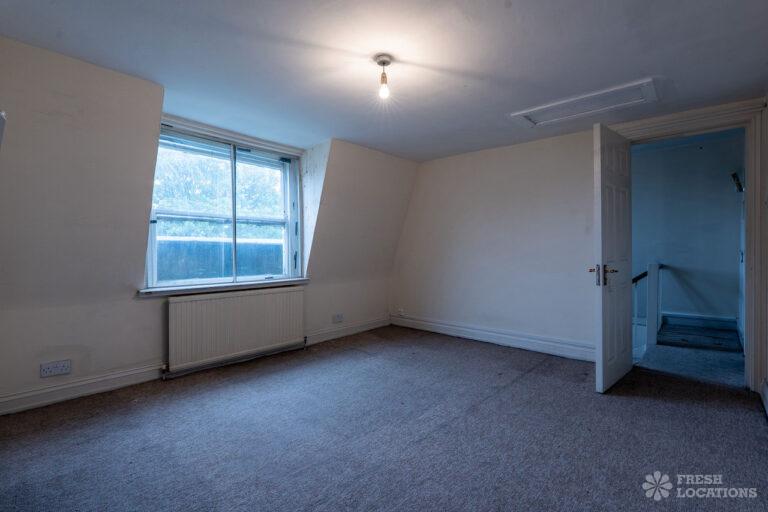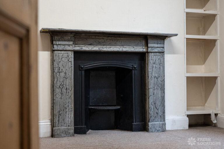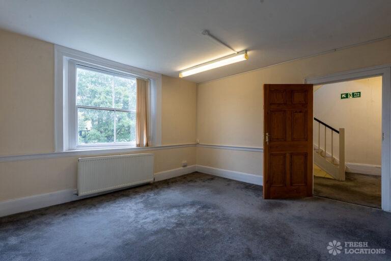 A stunning five-storey Georgian house shoot location in the London borough of Hackney, currently unoccupied and available to be painted or dressed as required. The property boasts impressive proportions on the ground floor, including a large drawing room with beautiful fireplaces and huge windows overlooking a green space. Additional features include front and back gardens, providing space for tents, scaffolding, or blackout setups. With its elegant period details and versatile interiors, this Georgian home offers a striking backdrop for a wide range of shoots. London Borough of Hackney.