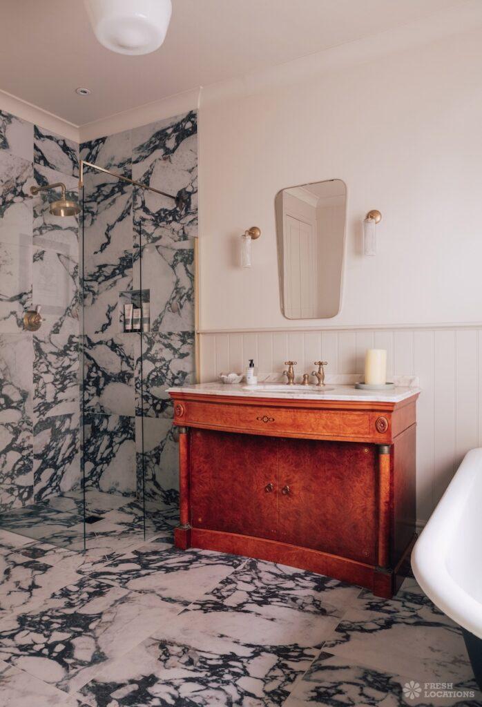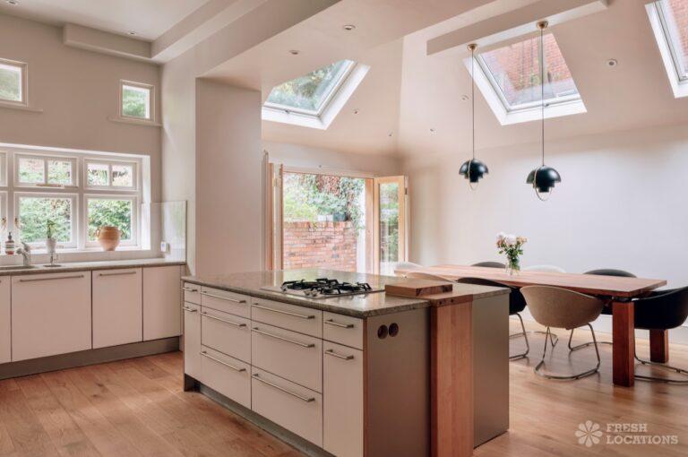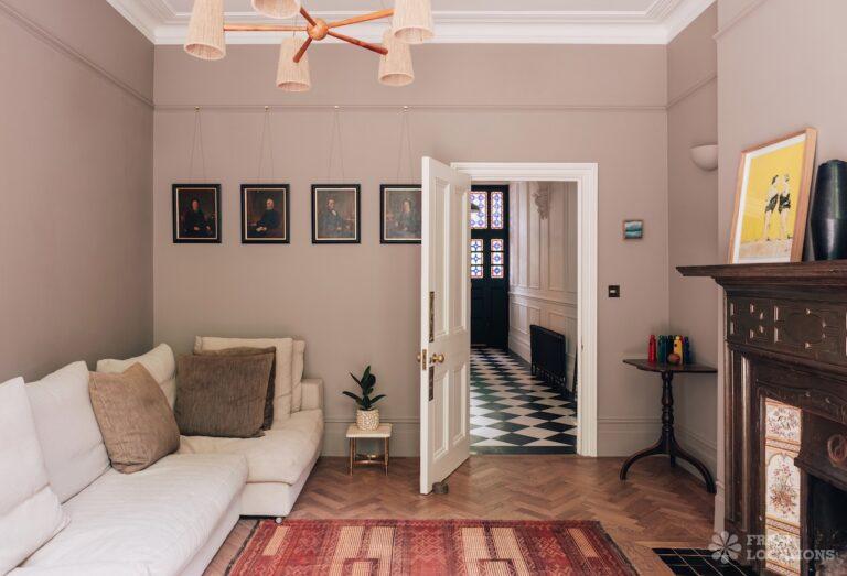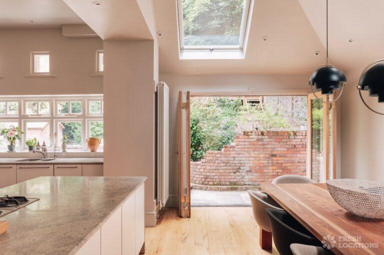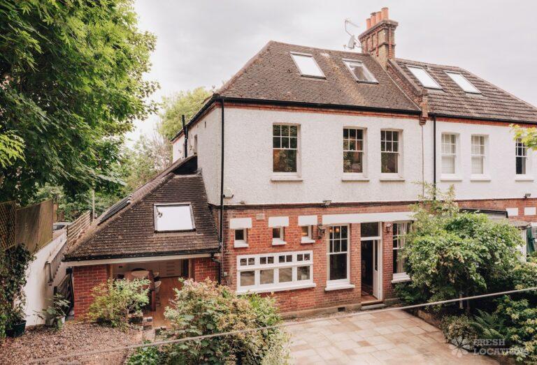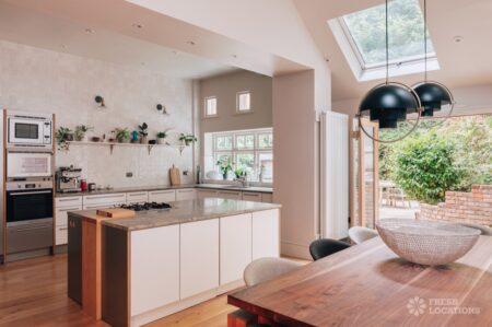 Courtyard, Ensuite, Fireplace, Garden, Gas Hob, Island Cooker, Island Kitchen, Light Wood Floor, Marble Floor, Multiple Bedrooms, Parquet Floor, Skylights, Walk In Shower, Wood FloorsThis beautifully extended Edwardian home in South East London blends timeless period charm with contemporary style, featuring a stunning open-plan kitchen with skylight, stone island, and garden access, alongside a luxurious marble-finished bathroom with vintage wood vanity. Upstairs there are multiple bedrooms with high ceilings and wooden flooring. Bathed in natural light throughout with a landscaped patio garden, modern finishes, and original character details. London Borough of Bromley.