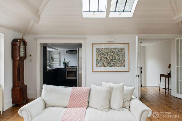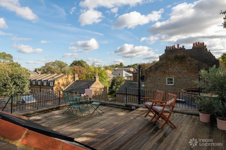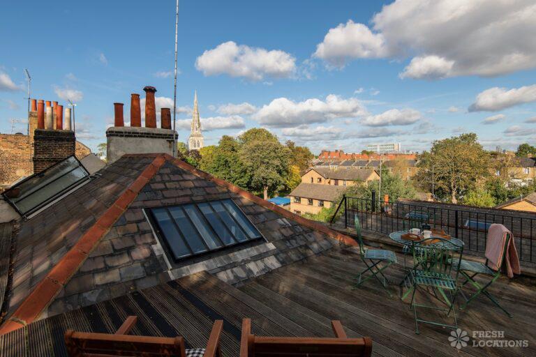 Light and bright Loft Apartment shoot location in South East London with a roof terrace. 2 double bedrooms. London Borough of Southwark.
