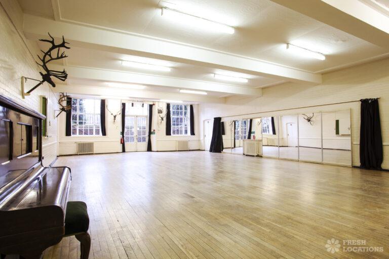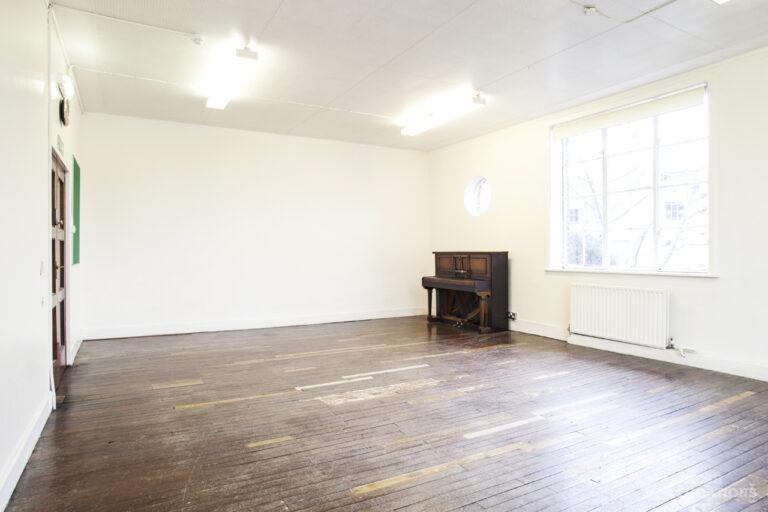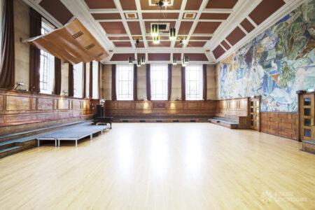 Unique and iconic venue. Large spacious rooms with wood sprung floors. Ideal for events. Interesting features including a wall mural, large windows enabling ample daylight, Double doors that open out to a walled garden. London Borough of Camden.