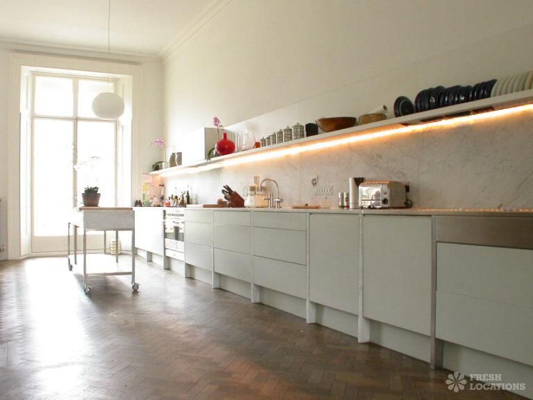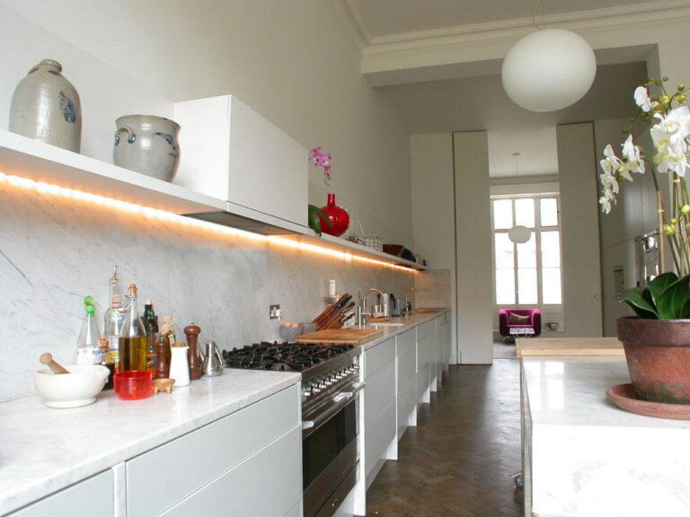 Wood Floors, Fireplace, Full Height Windows, Garden, Gas Hob, Home Office, Island Kitchen, Large Bedroom, Light Wood Floor, Open Plan, Staircase, Tiled FloorThis location in West London offers a large simply styled kitchen featuring parquet floor and a moveable island.The large french doors lead to a balcony overlooking a garden square. In addition there is a modern ‘studio’ space and traditional sitting room. City of Westminster.