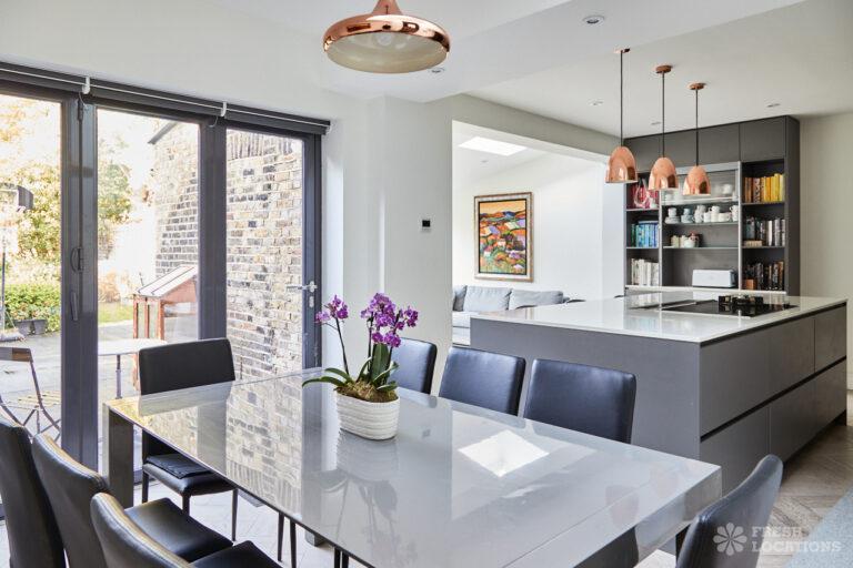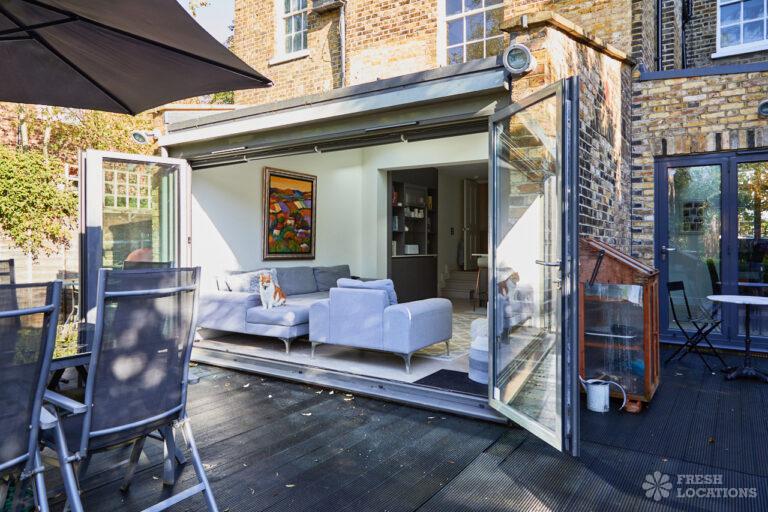 Wood Floors, Decked Terrace, Ensuite, Fireplace, Garden, Gas Hob, Home Office, Island Cooker, Island Kitchen, Light Wood Floor, Painted Floors, Skylights, Staircase, Tiled Floor, Unrestricted Parking, Walk In ShowerDetached house shoot location in South East London. Victorian villa with high ceilings and period featues, five double bedrooms, multiple living rooms, an open plan kitchen/dining area with two sets of bifold doors leading to the large garden. London Borough of Lewisham.