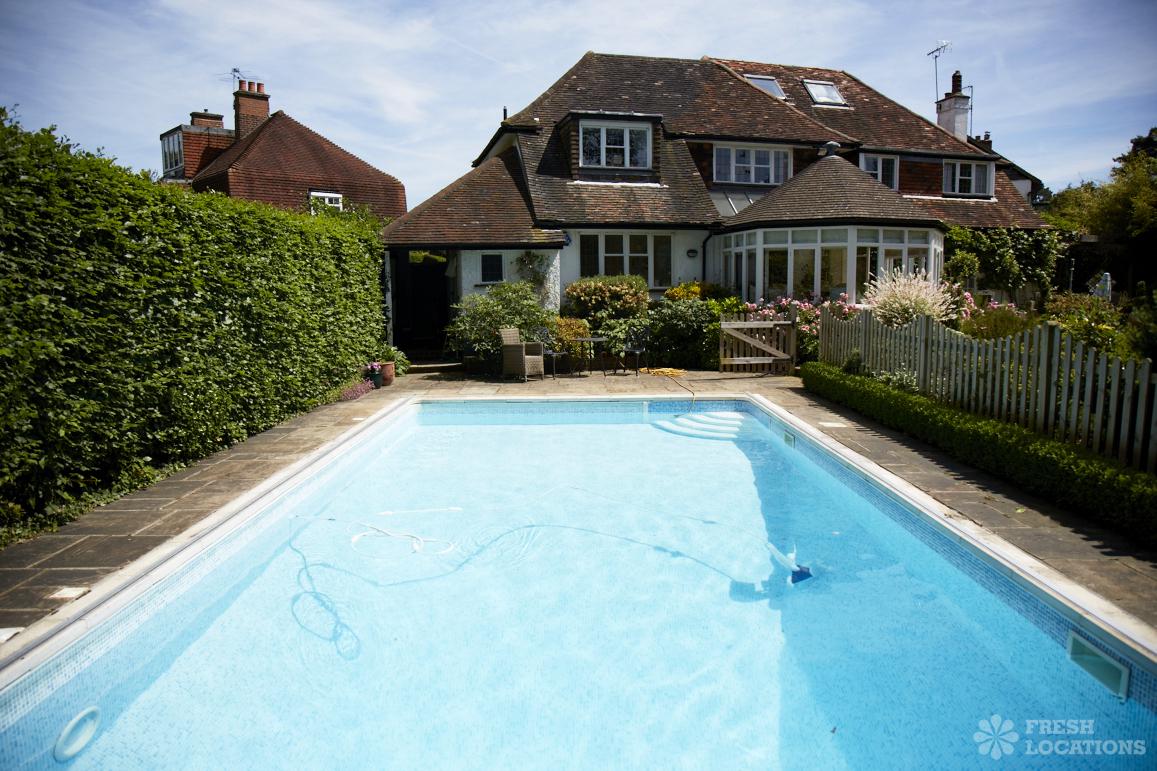 Wood Floors, Driveway, Ensuite, Front Garden, Garden, Large Kitchen, Swimming Pool, Tiled Floor, Walk In ShowerLarge Family home in Esher. Great living areas and boys bedrooms as well as an outdoor swimming pool.