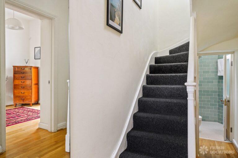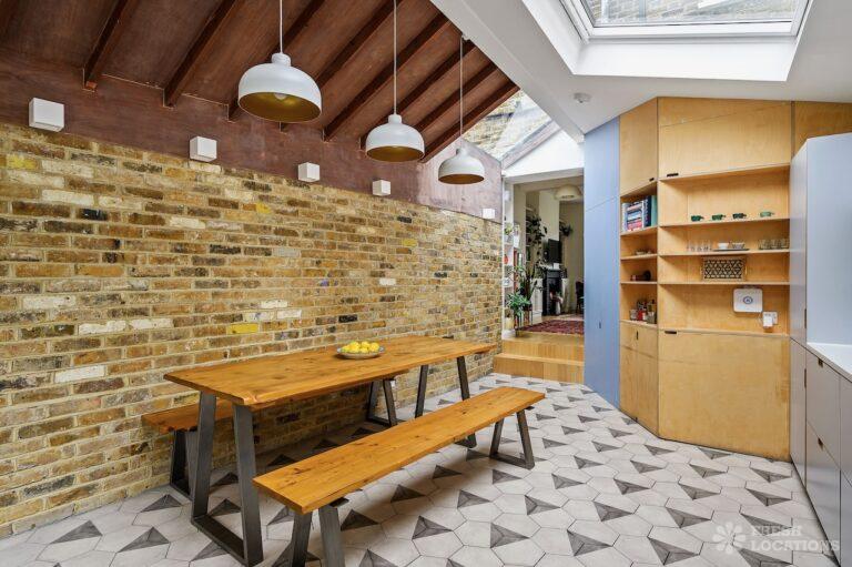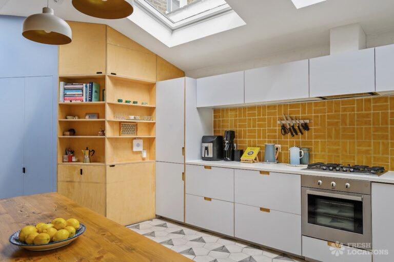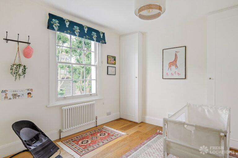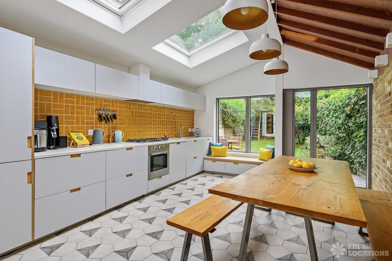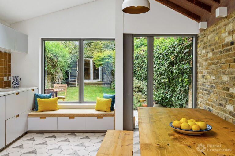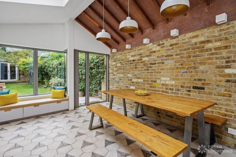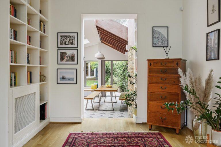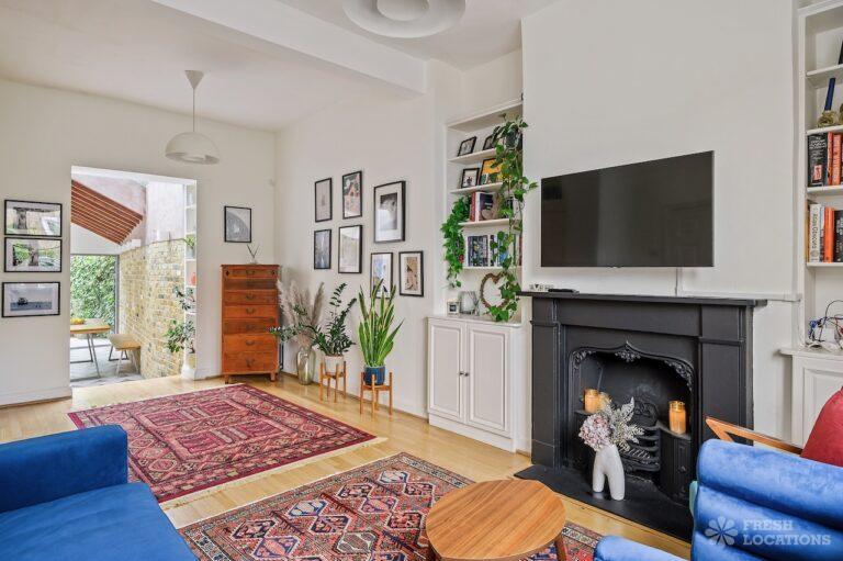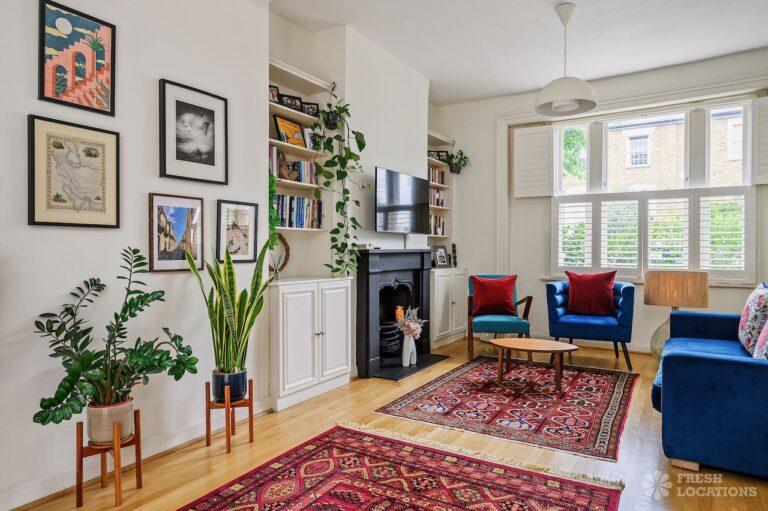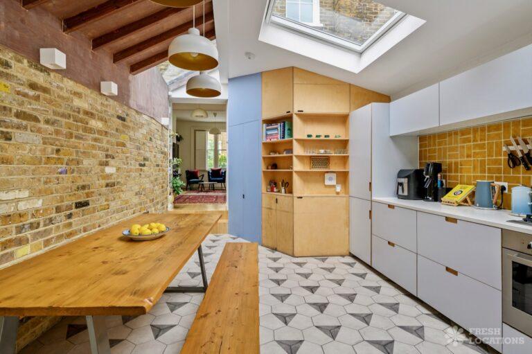 A modern terraced townhouse shoot location in North London. The property features a modern kitchen externsion, cosy living room, multiple bedrooms and a bathroom. London Borough of Hackney.