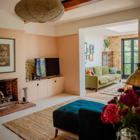 Island Kitchen, Colourful Kitchen, Fireplace, Garden, Large Garden, Large Kitchen, Light Wood Floor, Multiple Bedrooms, Wood FloorsA stylish family home photography and film shoot location in Hertfordshire. This property features warm tones and wooden features throughout giving a cosy counrty feel.