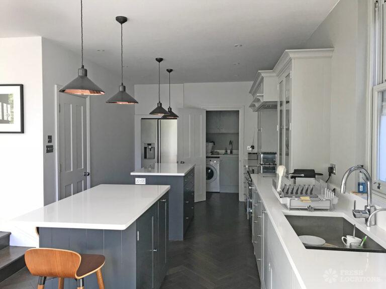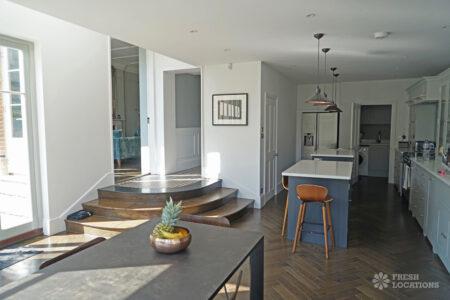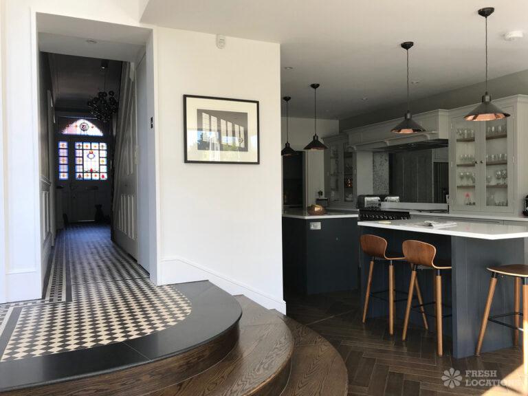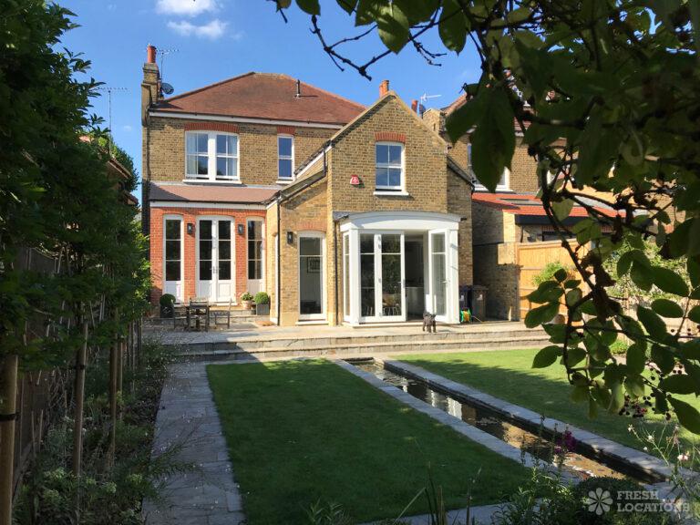 Wood Floors, Ensuite, Fireplace, Garden, Island Kitchen, Light Wood Floor, Open Plan, Parquet FloorLight and modern Victorian family property in Ealing. Contemporary island kitchen with french doors leading out to a garden with pond and patio area. Parquet flooring and period features throughout. London Borough of Ealing.