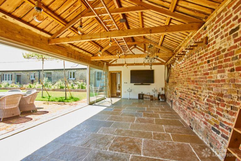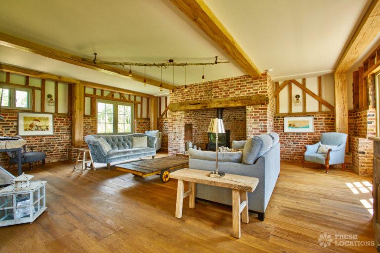 Wood Floors, Aga, Ensuite, Exposed Beams, Exposed Brick, Fireplace, Front Garden, Garage, Garden, Greenhouse, Inglenook Fireplace, Island Cooker, Island Kitchen, Large Bedroom, Large Driveway, Open Plan, Staircase, Tiled Floor, Walk In ShowerBeautiful converted barn in the Kent countryside. Excellent shoot location featuring two island kitchens, several large bedrooms and open plan dining and living areas. Exposed brick, wood floors and exposed beams throughout. Just one hour outside of London. Large driveway and garage.