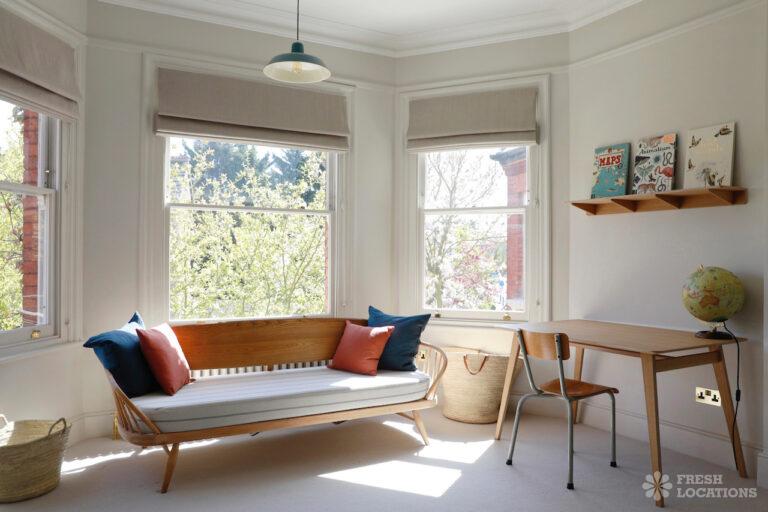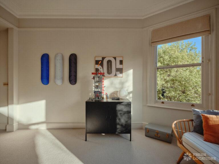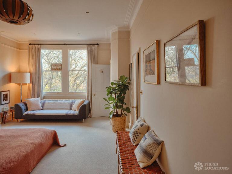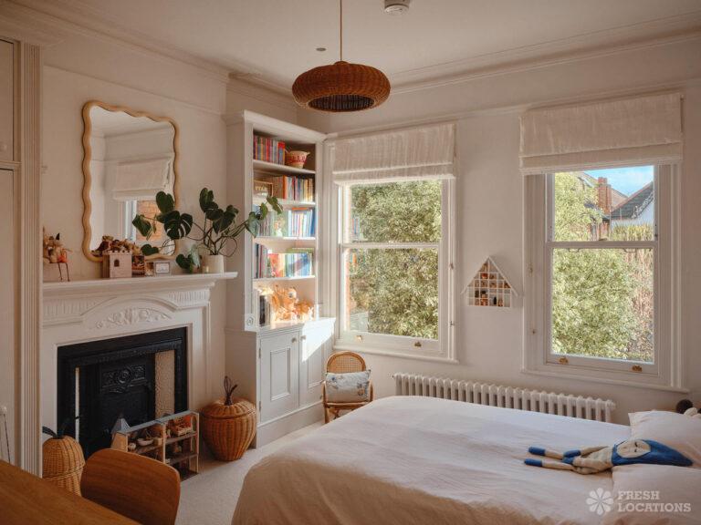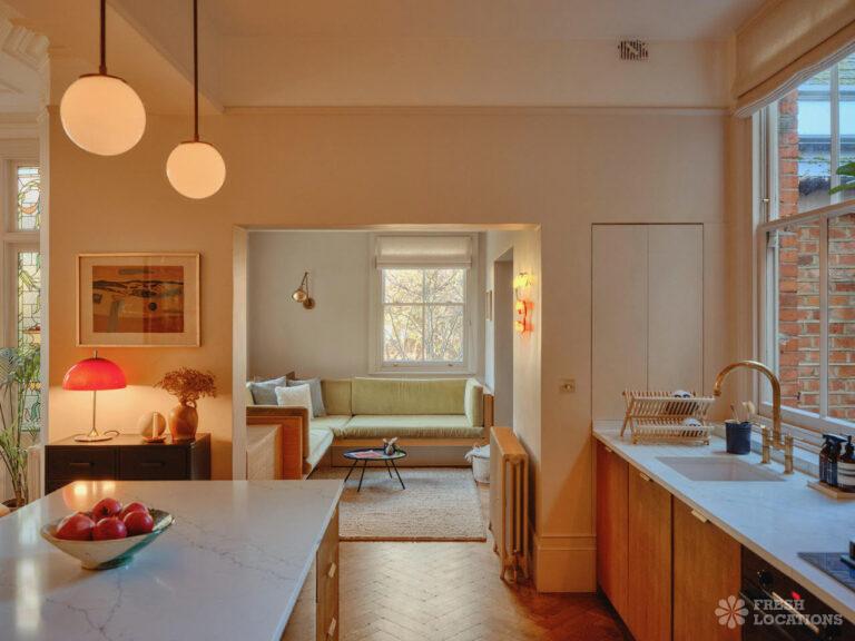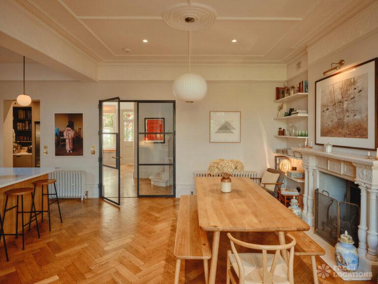 Wood Floors, Bay Window, Ensuite, Fireplace, Garden, Gas Hob, Island Kitchen, Large Bedroom, Open Plan, Parquet Floor, Staircase, Tiled Floor, Walk In ShowerVictorian house shoot location in North West London. Featuring bright open plan kitchen diner, five bedrooms including children’s bedrooms, multiple reception rooms and a large garden. Parquet floors and stained glass throughout. London Borough of Brent.