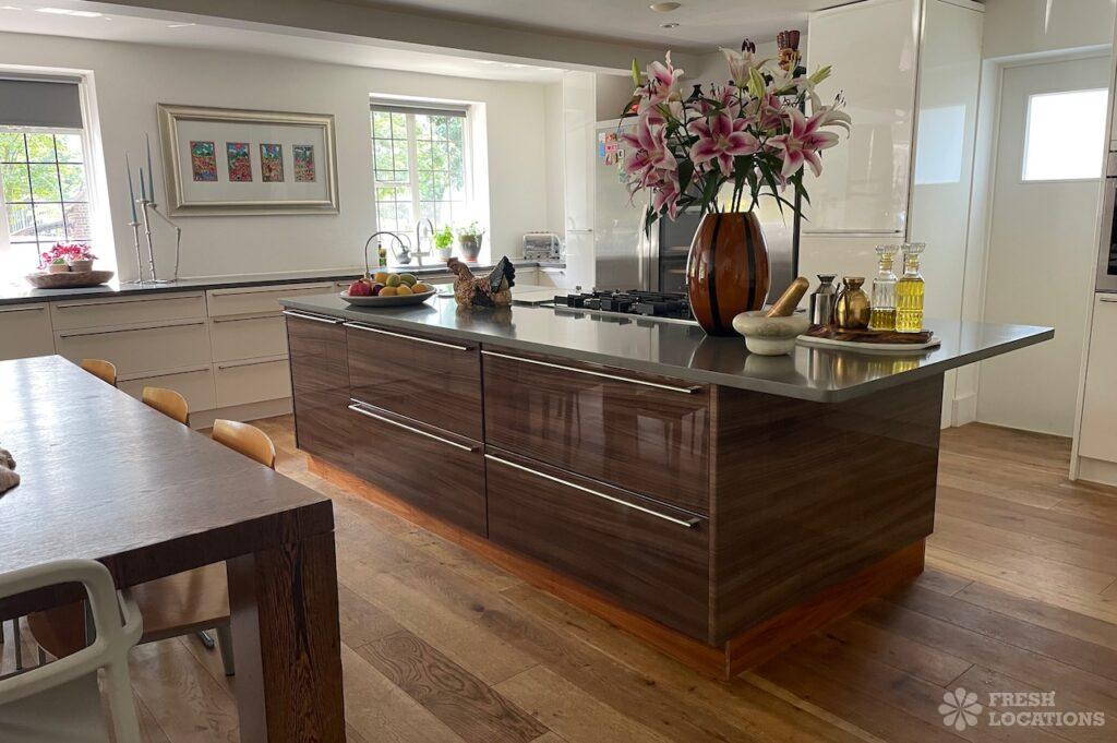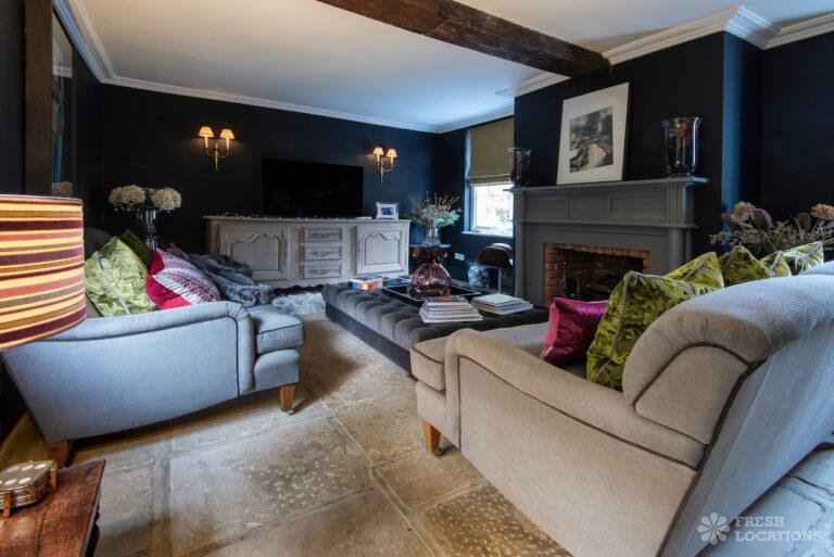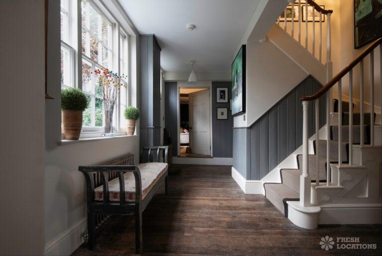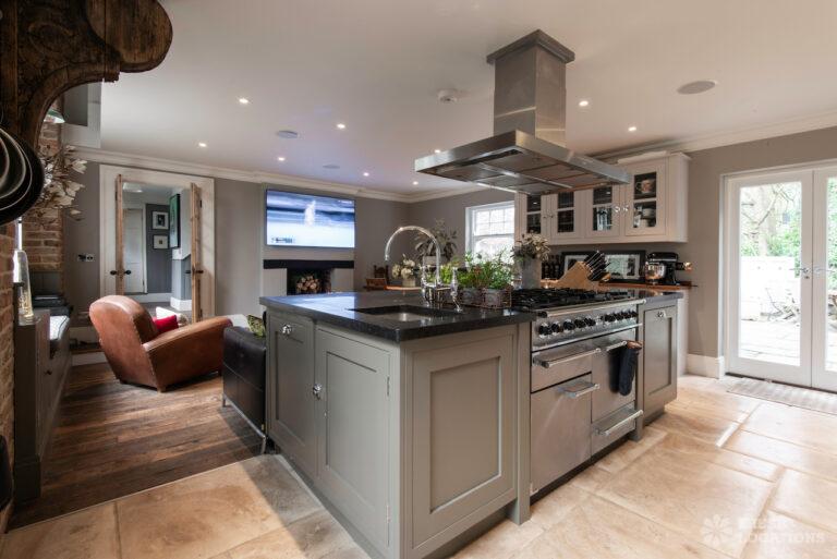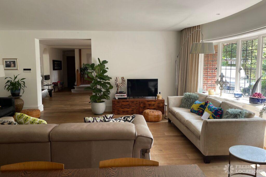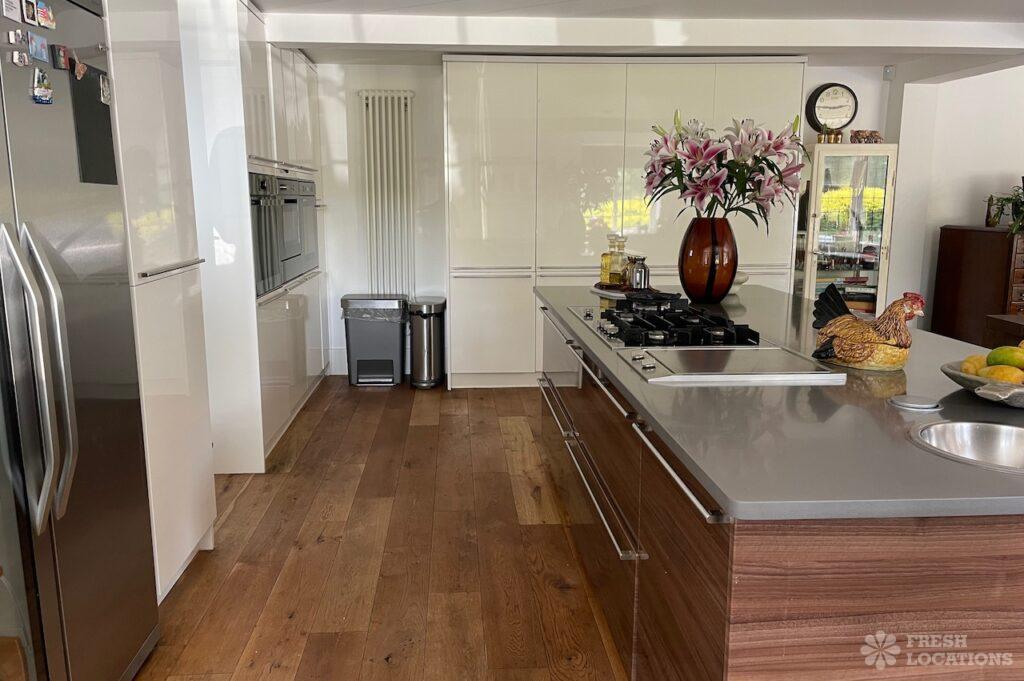 Garden, Dark Wood Floor, Driveway, Fireplace, Island Cooker, Island Kitchen, Large Driveway, Large Garden, Light Wood Floor, Multiple Living Rooms, Staircase, Walk In Shower, Wood FloorsDetached house in Berkshire. This shoot location has a country style interior, with two reception rooms and an island kitchen on the ground floor. Large, lush garden with a pond and large driveway.