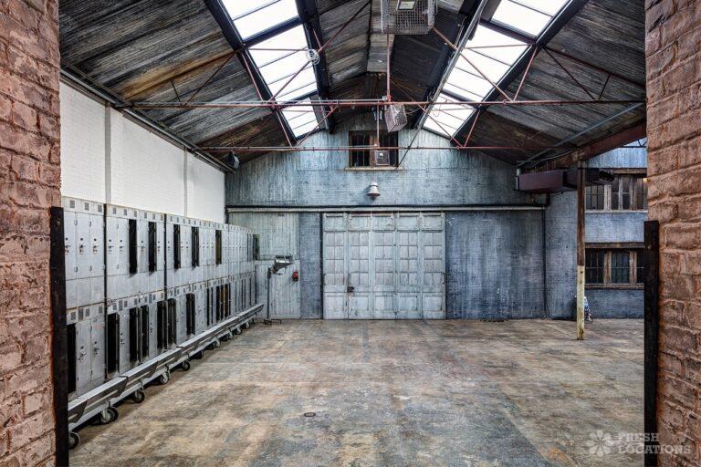 The Film Shed is a huge open East London space that is extremely versatile. The walls offer a variety of brickwork colours and textures. Worn, concrete floors , large skylights and an overall industrial feel. Other features include electric blackout blinds, 3 Phase power, changing and make up room complete with light-up mirrors, steamer and hanging rails. There are two rooms upstairs for either clients, extras or a green room. London Borough of Hackney.