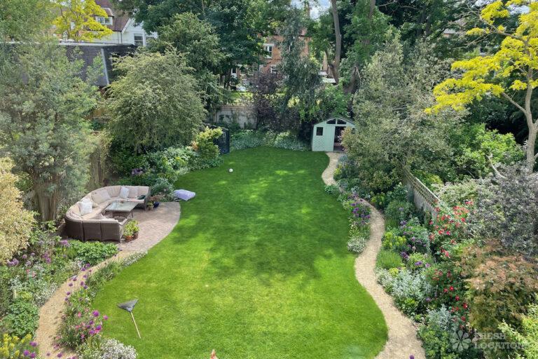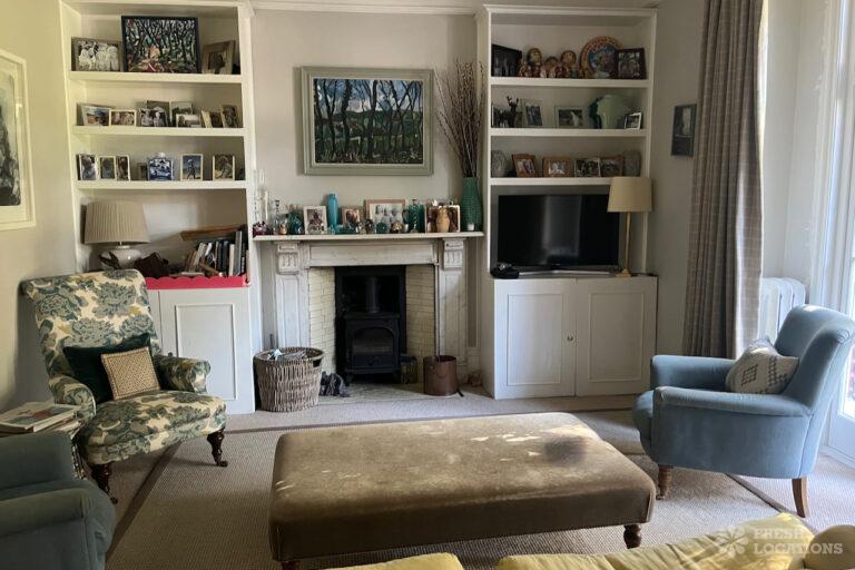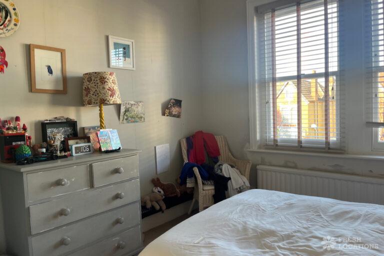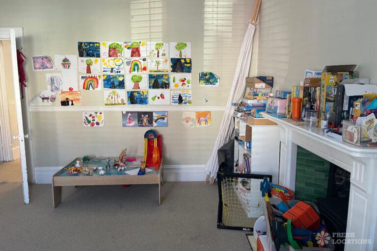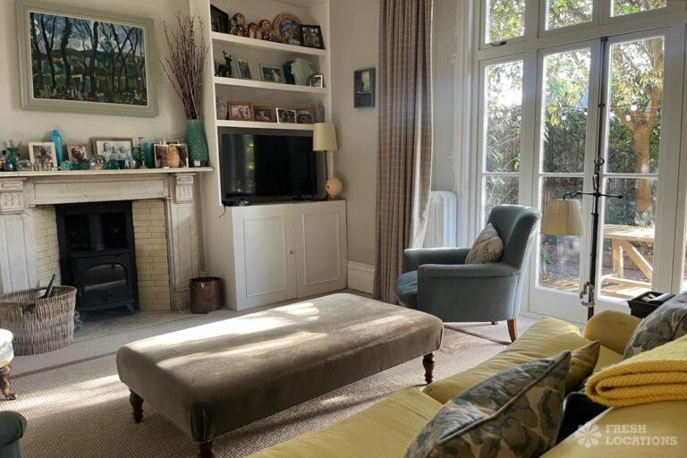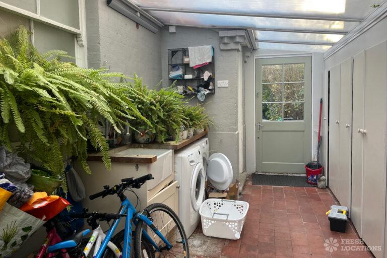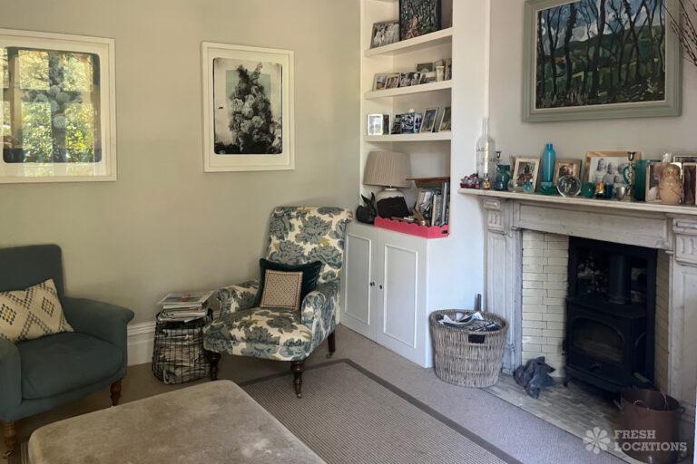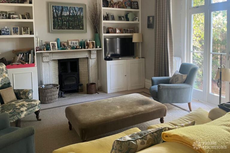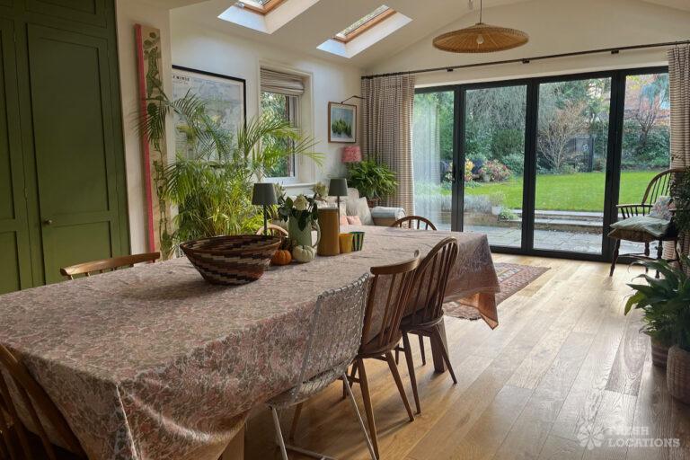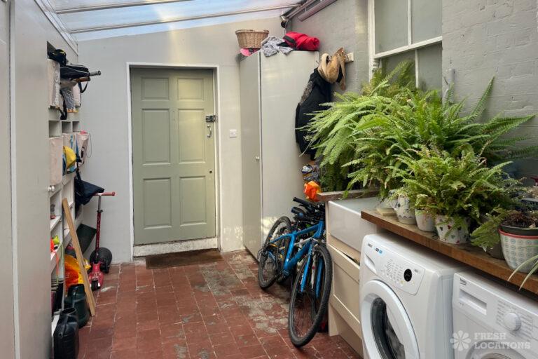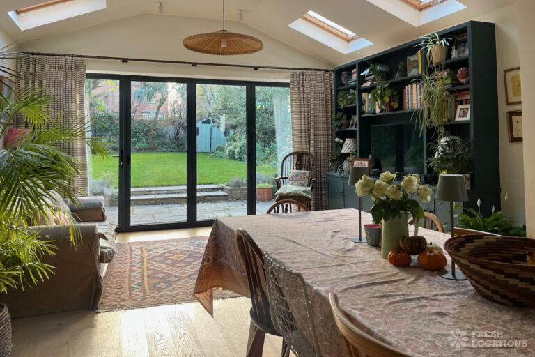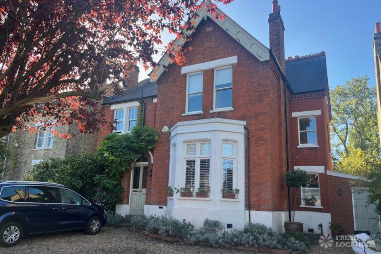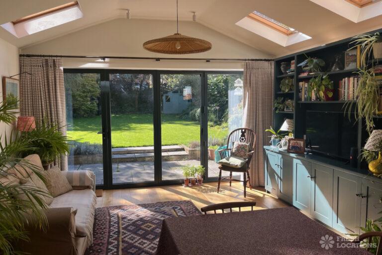 Colourful Kitchen, Driveway, Fireplace, Garden, Island Kitchen, Large Driveway, Light Wood Floor, Multiple Bathrooms, Multiple Bedrooms, SkylightsA family home in South West London, with six bedrooms and three bathrooms, featuring a beautifully renovated kitchen-diner, a playroom, a study, and a sitting room. It also includes a boot room with access to the garden and a side door. Located in the London Borough of Lambeth.