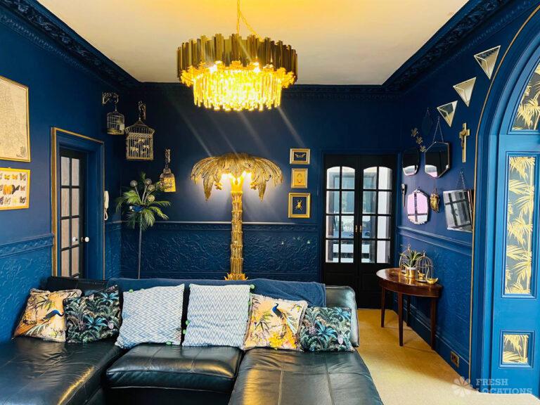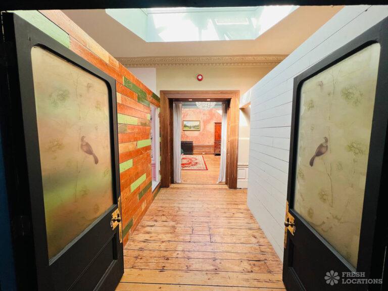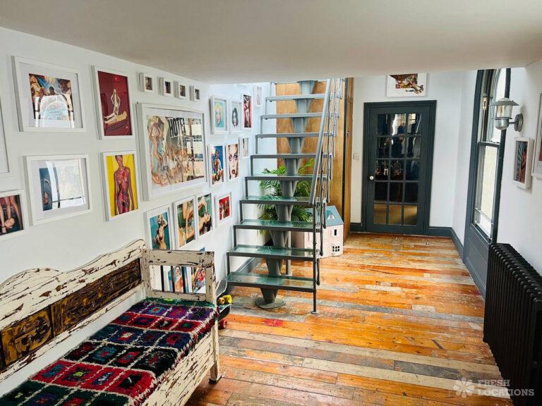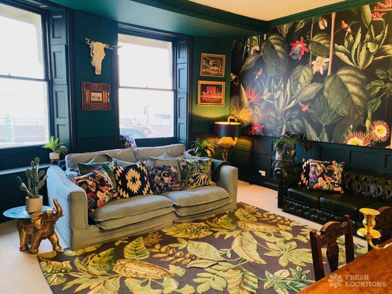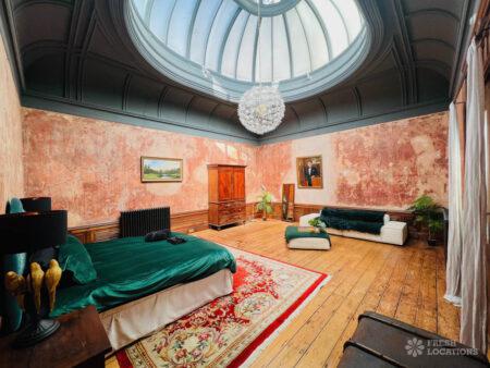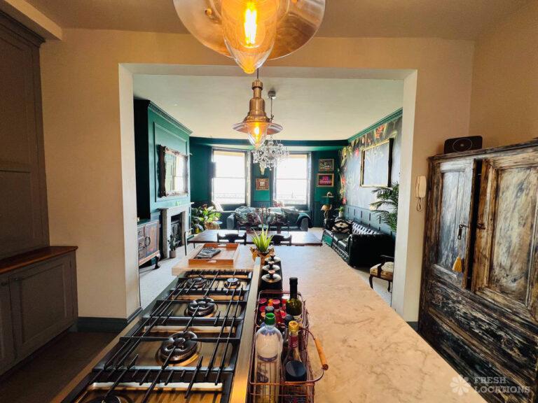 Wood Floors, Ensuite, Fireplace, Gas Hob, Inglenook Fireplace, Island Cooker, Island Kitchen, Large Bathroom, Large Bedroom, Open Plan, Panelling, Skylights, Tiled Floor, Walk In ShowerOriginal Victorian art gallery which has been converted into a 3 bedroom flat in Brighton. This shoot location features an array of colourful rooms, wood floors, high ceilings and open plan kitchen/living room.